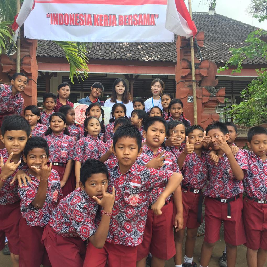 15级日语2班的马梓丹通过由Gapper国际义工旅行组织的支教项目,前往印度尼西亚巴厘岛的初高中开展汉语营活动,主要是和当地员工进行文化上的交流。她们采用一天一主题的形式进行授课,从动物、食品到运动项目,从汉语拼音到词汇、短句,期间穿插游戏和歌曲辅助教学,充分调动了孩子们学习的积极性。“我们在教授中文单词时,每一个词旁边都配有生动可爱的解释图来帮助员工们理解。两个人在黑板前领读单词、解释意义,另外三个人在下面随时解答问题和帮助员工做笔记。员工们学习中文的态度认真又端正,跟读单词时,声音非常洪亮,做笔记时,黑板上的每一个字符都要记在自己的本子上,图示也完完整整地画下来。”她表示,选择参与海外志愿,是因为有着帮助他人的热情,想凭借自己的绵薄之力,教孩子知识,帮他们成长,传播中国文化。选择旅行,是因为想看看世界,时刻告诉自己,未来还有诗和远方。