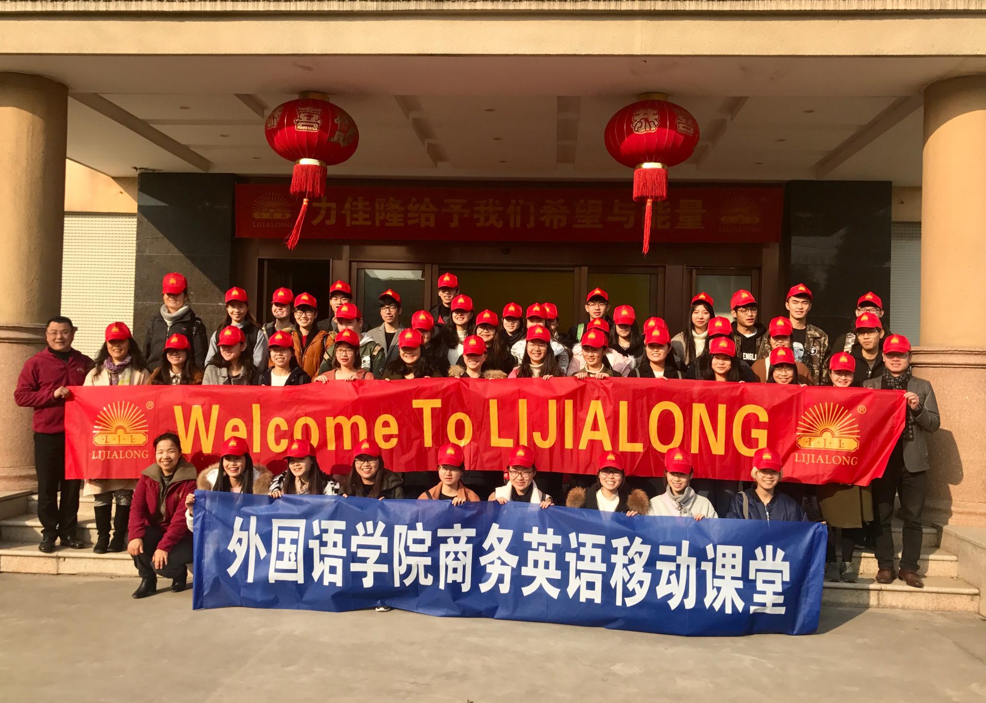 2017年12月26日下午,公司2016级商务英语专业同学在商务英语副主任孙久荣老师和潘江峰老师的带领下,来到海宁市力佳隆门窗密封条有限公司开展移动课堂实践活动。