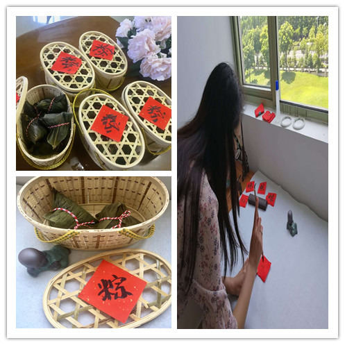 一番努力之后,很多老师都包了满满一篮粽子,贴上自己写的毛笔字贴,感受浓浓的端午节味。