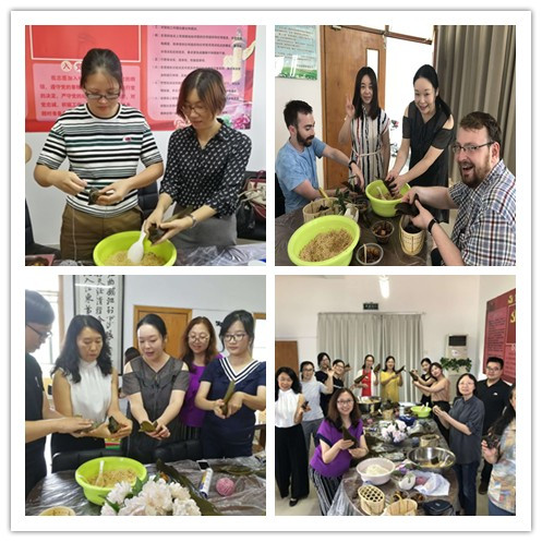 彩缕碧筠粽,香粳白玉团,为纪念传统节日,弘扬传统文化,同时庆祝公司的教工小家被评为省“模范教工小家”,6月15日,公司在教工小家举办“情浓端午,粽享欢乐”为主题的端午节文化传播与包粽子活动。校工会副主席王晨曦老师,公司外教和老师们出席了此次活动。