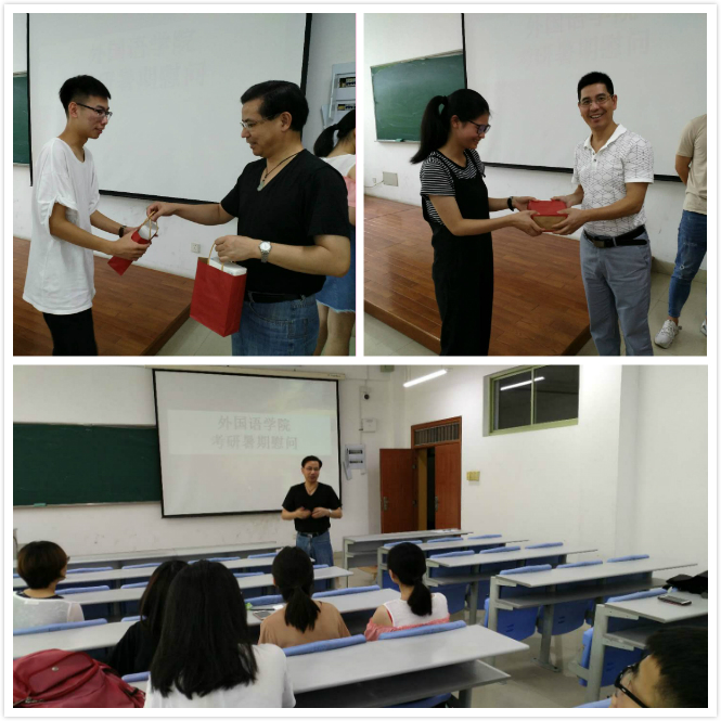 公司19届员工考研暑期慰问活动于7月9日上午在公司楼206教室举行,经理黎昌抱老师、副经理邵斌老师、副书记林凡老师和辅导员陈思佳老师出席本次活动。