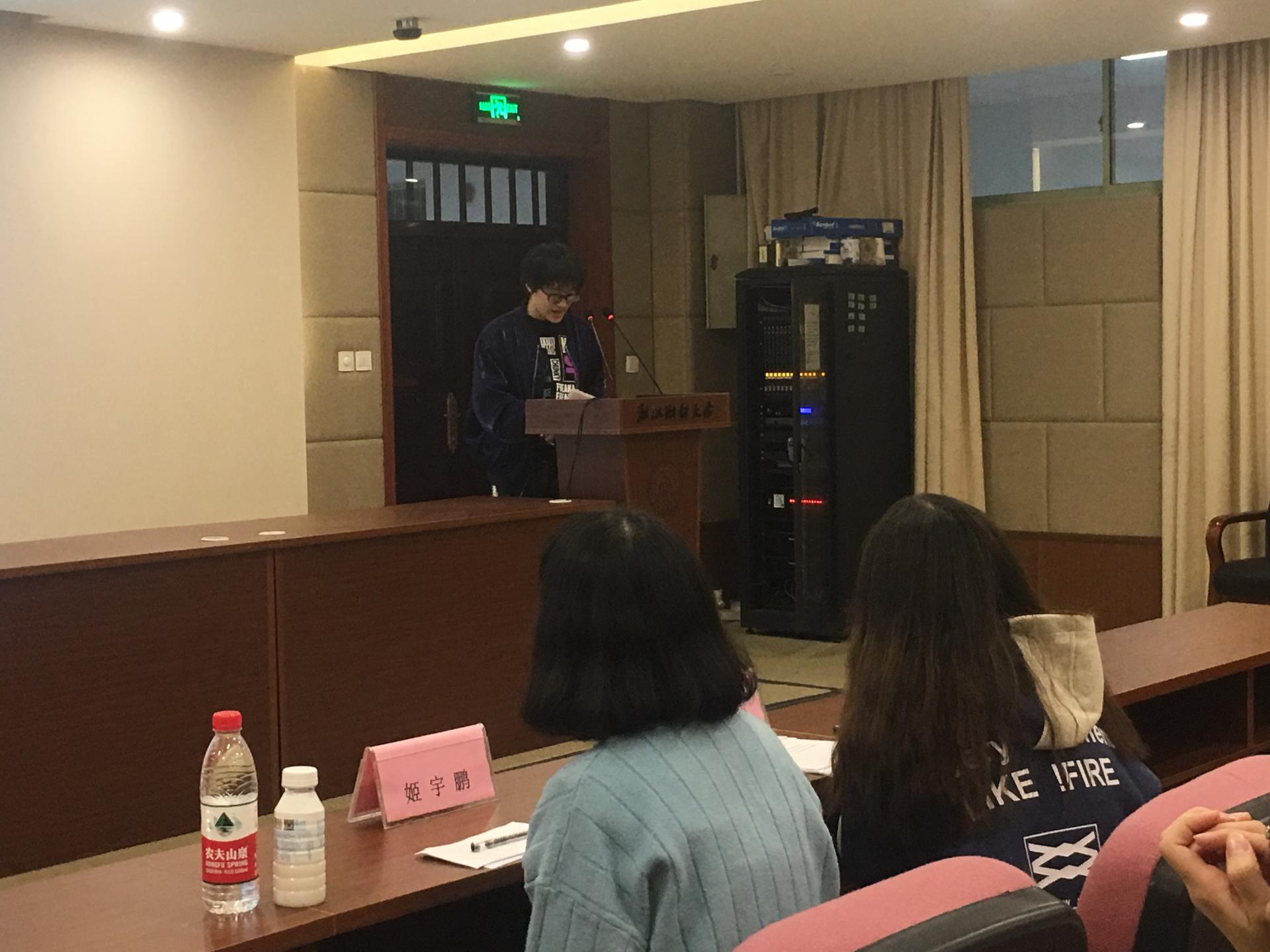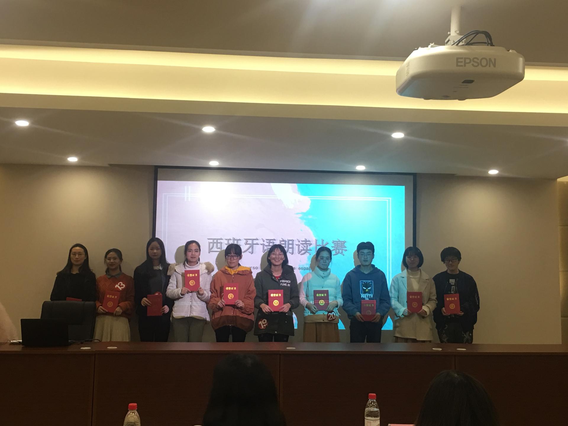 11月29日晚,公司首届西班牙诵读大赛在公司楼8108报告厅顺利落幕。西班牙语专任教师姬宇鹏老师、陈婉玉老师担任大赛评委,全体2017级英西复语班员工参赛,部分2018级新生到场观摩学习。本次大赛由院员工会实践部承办。