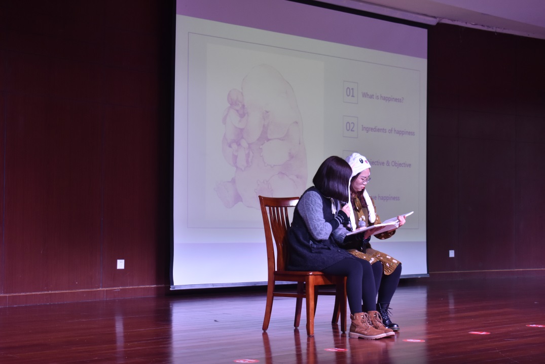 研究生团队合作英语口语报告竞赛全程共分三个阶段,经过初赛、复赛的层层选拔,共有十二支队伍从各专业总计七十二支队伍中脱颖而出、晋级决赛。决赛包含报告展示、评委问答等环节,以小组合作口语报告的形式进行。决赛参赛小组们根据“Happiness”这一主题,通过脱口秀、情景剧、访谈、演讲等形式,结合电影短片等媒介,从不同角度分析和表达了他们对幸福的理解,展现了出色的语言能力及表演天赋。