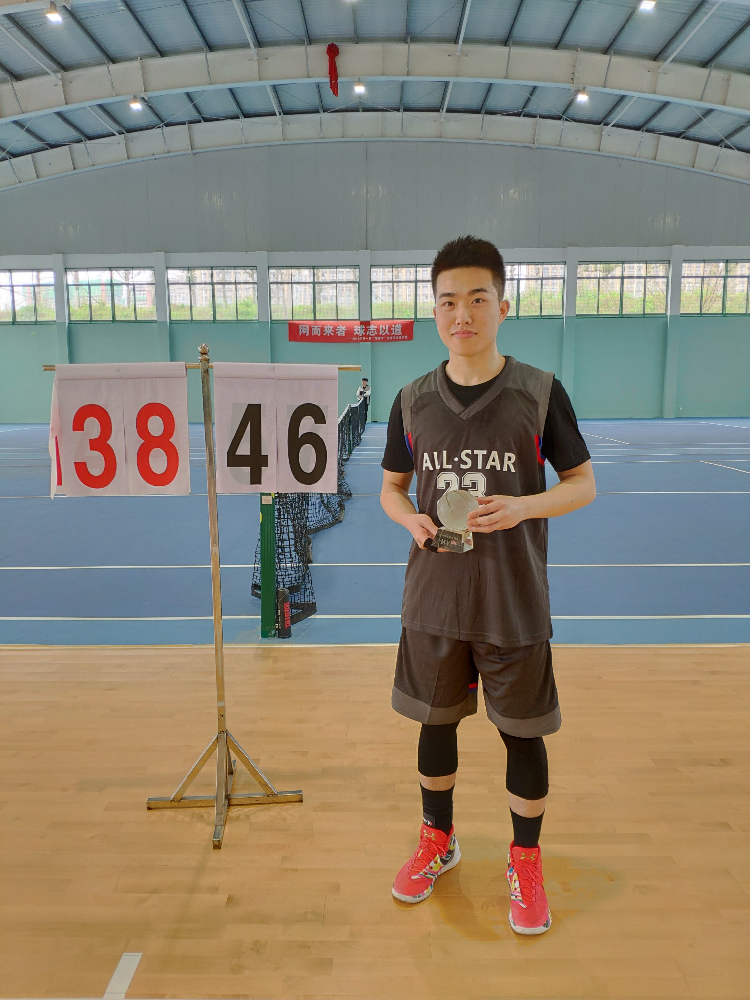 比赛中,两队队员以精彩的抢断、默契的传球、精准的投篮,博得现场观众阵阵掌声。本次比赛首次采用员工和在校生混编形式组成两队:火箭队和梦之队,分别身着黑色和灰色球衣,经过激烈角逐,火箭队最终以46:38的比分获胜。火箭队郭琼敬凭借个人出色的综合能力获得本场MVP,18级辅导员陈思佳老师为他颁奖。