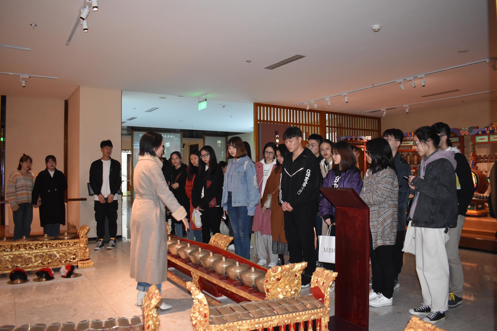浙江音乐博物馆位于浙江音乐公司,是我省首家全方面展示古今中外人类优秀音乐文化遗产成果的专题博物馆。现场,工作人员带领同学们参观了博物馆四大展区与艺术专题馆,生动、详尽地讲解了馆内陈列的每件乐器和乐器背后的故事。在工作人员的指导下,同学们还敲击了曾侯乙编磬(复制品)、晋候苏编钟(复制品)、围锣、围鼓等乐器,聆听了古今中外各类乐器发出的美妙声音,不禁赞叹人类艺术工艺的精致曼妙与音乐文化的博大精深。