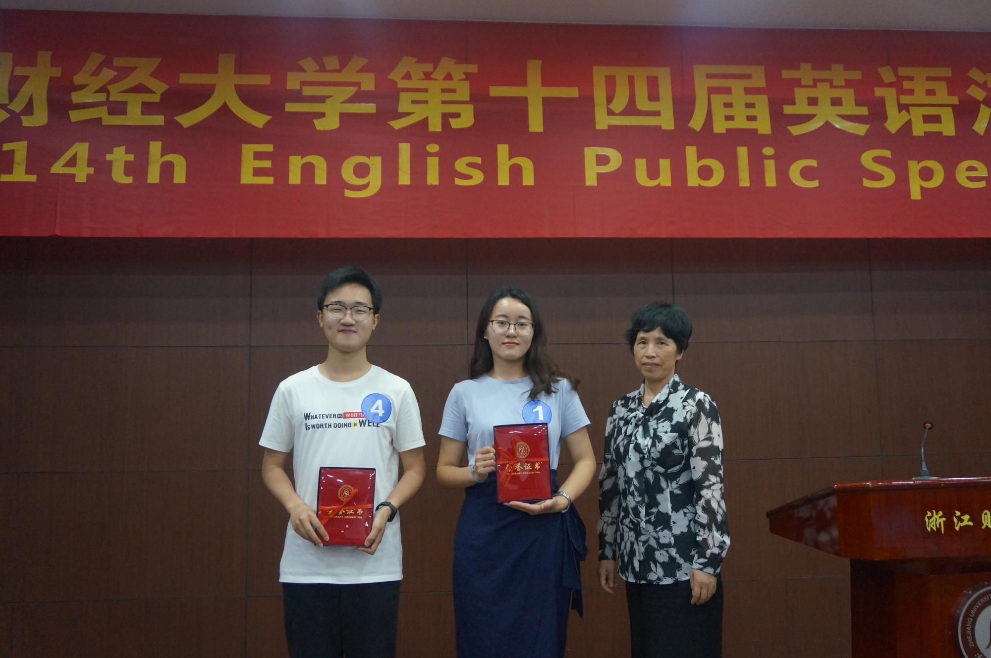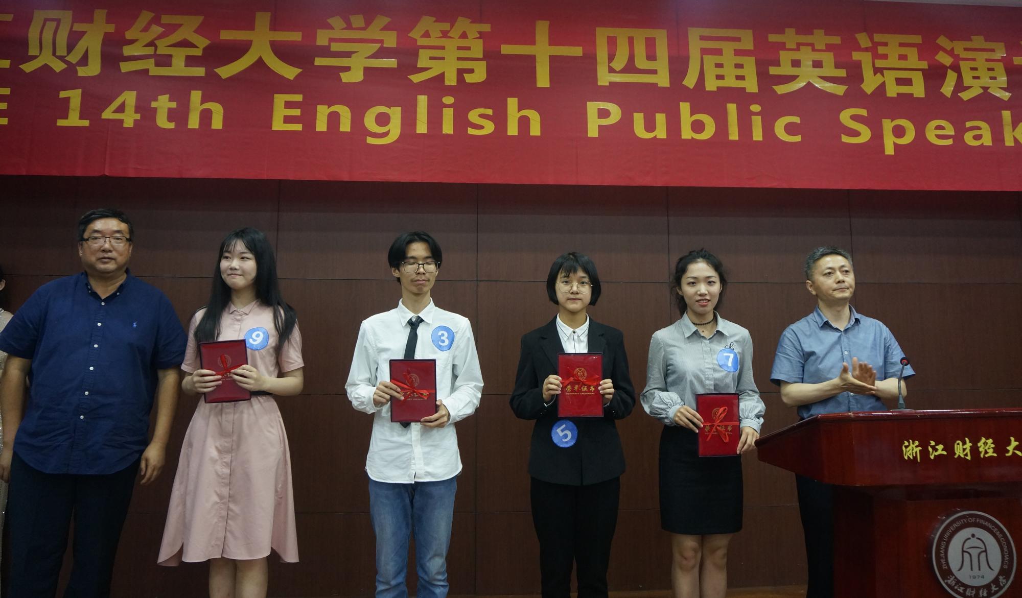 最终,17级广告1班孙嘉琪、18级法公司叶苏哲获得一等奖;18级财税2班王琬涵、18英西复语班李泱、18级ACCA2班吴冠磊、18财务管理CIMA 吴双获二等奖;18级财会2班王寒冰、18级中英金融1班李知语、18中英金融1班金佳薇、18级财会班杨蕾、17商务英语1班沈凯文、18级ACCA班胡懋范获得三等奖。