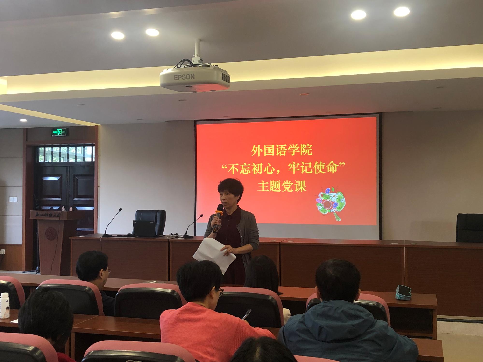 她要求,党员老师们要坚守教育初心,紧紧围绕“立德树人”根本任务,在外语教学中融入思想政治教育,发挥课程协同育人作用,进一步强化老员工对主流价值的认识,增强社会主义文化自信,进一步培养员工的“国际视野”和“家国情怀”。