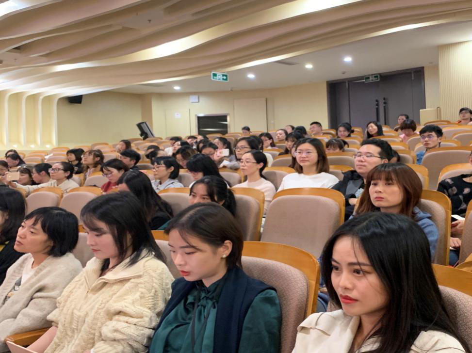 同学们认真聆听了杭州新世纪外国语公司滕梅芳董事长以“基于合作学习的‘思·辨·演’英语课堂研究”为主题的国家级教学成果推广讲座和华东师范大学博士生导师邹为诚教授的“论课堂师生语言交流质量与员工思辨技巧发展的关系”主题讲座,观摩了周芹和陆霞飞两位杭州名师精彩的课堂展示。