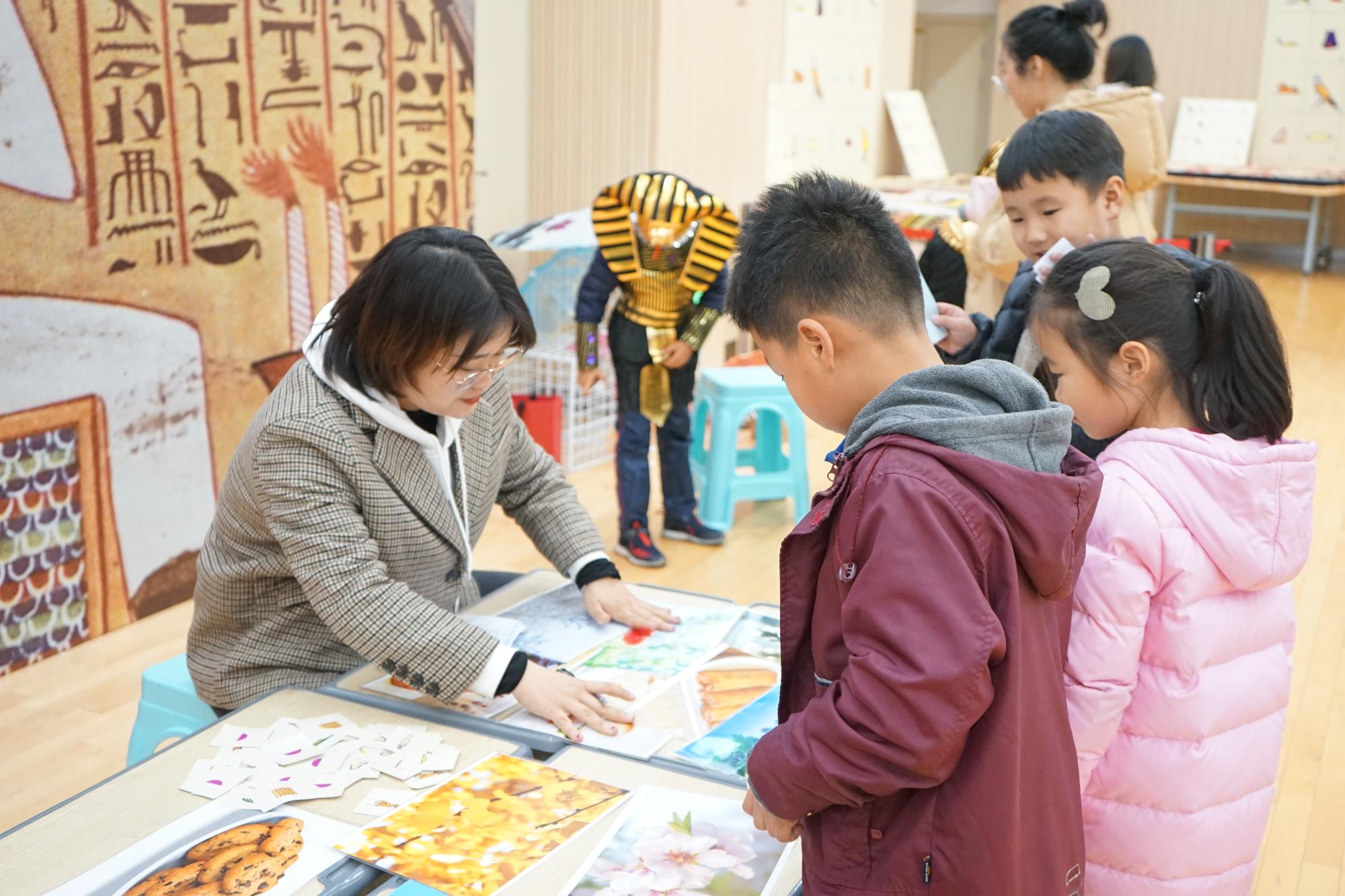 此次活动文清小学以“埃及旅行”为主题,志愿者小组多数以“2+1”模式即两位研究生加一位职工的形式组成,在6个场馆内帮助小朋友们进行单词拼读训练、看图说话、口语交际等各项测试。