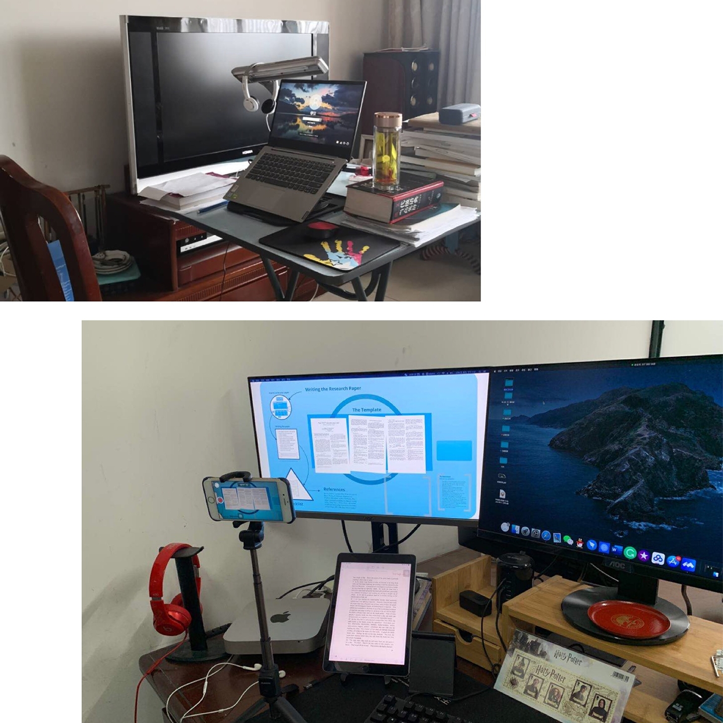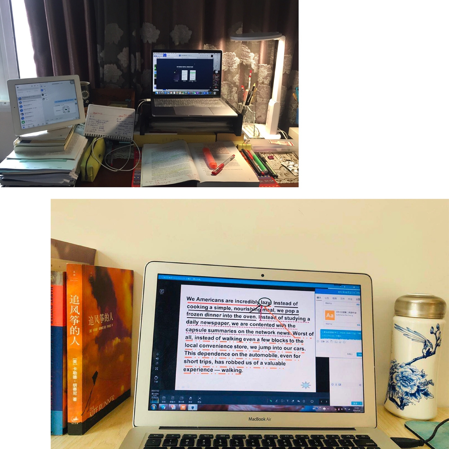 在家“作战”的英语系老师们为了成为云课堂的主播,紧密合作,积极探索,力争给员工提供最佳的学习体验。在超长寒假中沉寂良久的系部微信群开始活跃,大家纷纷探讨QQ直播、QQ群课堂、钉钉、雨课堂和学习通各直播平台的利弊,分享各自搜集到的优质教学资源,开启与疫情赛跑模式。老师们为保证在线教学的正常进行,不仅精心设计教学内容,而且准备了Plan A,B,C。从来没有制作过微课的老师开始录课,一部分老师利用中国大学MOOC平台、浙江省高等公司在线开放课程共享平台,采用线上线下相结合的混合教学模式。外语公司老师的学评教在全校一直名列前茅,在特殊时期,我们同心抗“疫”,争当一线主播。