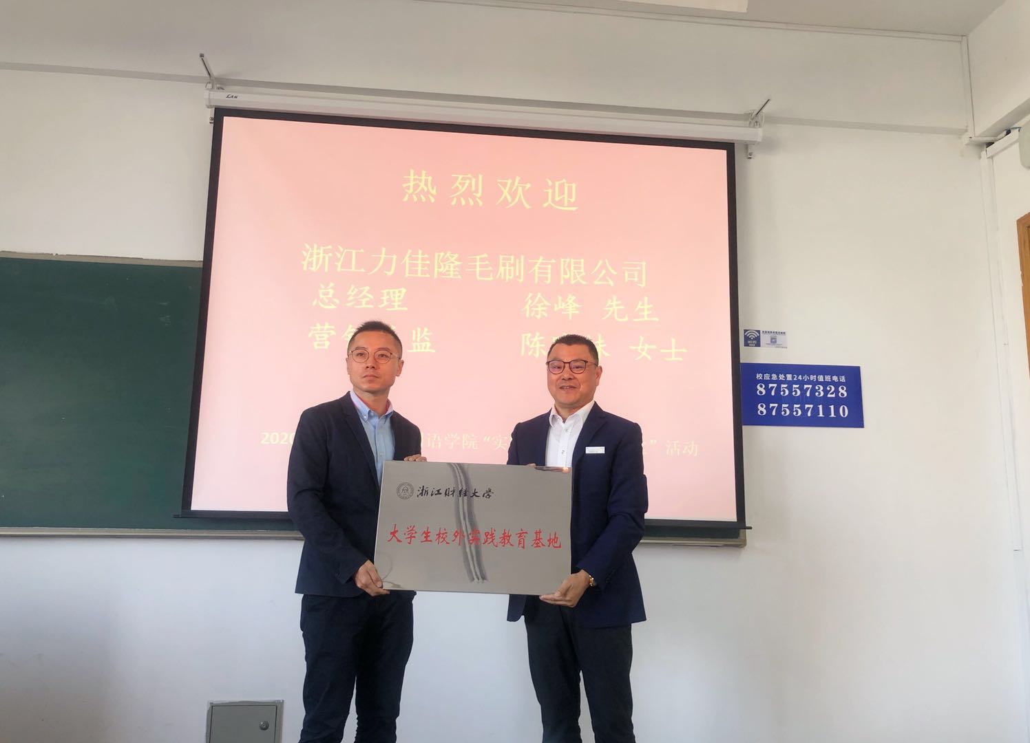 2020年11月4日上午,公司商务英语专业2018级“基地精英进课堂”活动如期举行。浙江力佳隆毛刷有限公司总经理徐峰先生和营销总监陈晓妹女士应邀走进《国际贸易实务》课堂。公司杨小龙副经理、教学办庞伟慧主任、商务英语系熊建国主任、雷丽贇副主任以及商务英语系余清萍、杨爱萍、李璐、袁国爽、黄彬瑶等老师参加了此次活动。本次活动由实践基地负责人孙久荣老师主持。