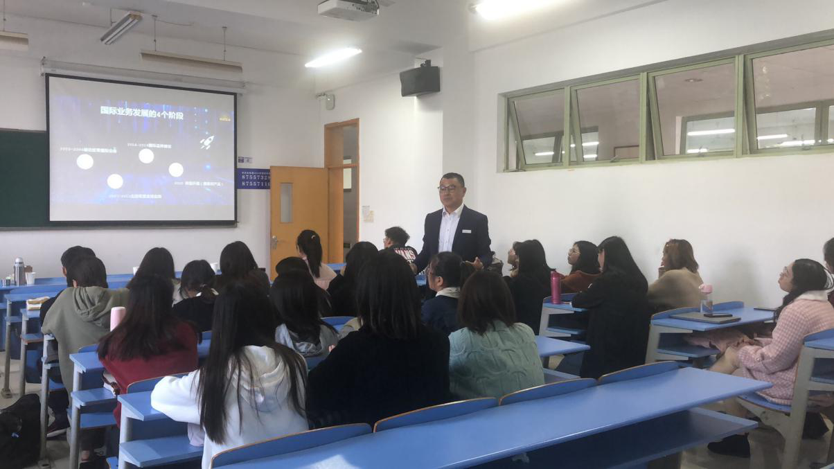 随后,徐总向同学们分享了企业的发展历史、企业文化、管理模式、销售渠道、国际贸易相关知识以及在工作中遇到的困境,讲述了重要订单成交经历,使同学们更加深刻地理解了企业文化以及市场营销中通过产品差异化取得竞争优势的重要性。