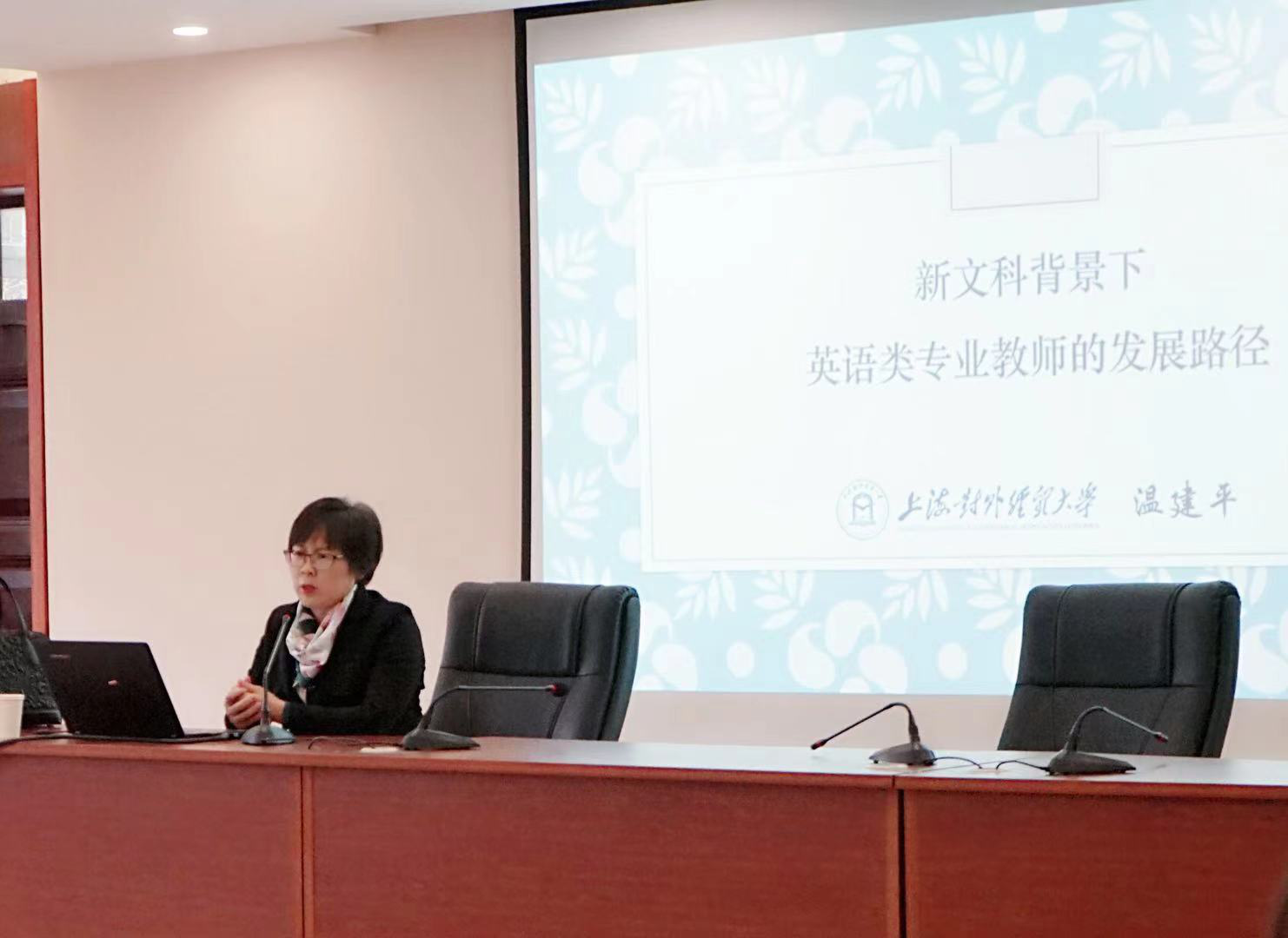 2021年4月1日下午,上海对外经贸大学国际商务外语公司经理温建平教授应邀在公司108报告厅作了题为“新文科背景下英语类专业教师的发展路径”的讲座。此次讲座由经理黎昌抱教授主持,公司教师聆听了本次讲座。