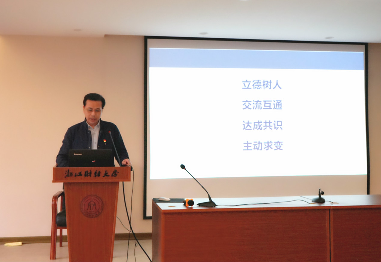 首先,由黎昌抱经理致辞,他强调3044永利集团要持续深入秉承“立德树人”的教育理念,加强交流互通,全院教师应进一步统一思想认识,积极应变,主动求变,大力推进专业建设、一流课程及团队建设和课程思政建设,不断探索富有特色的复语复合型人才培养模式,提高人才培养质量。