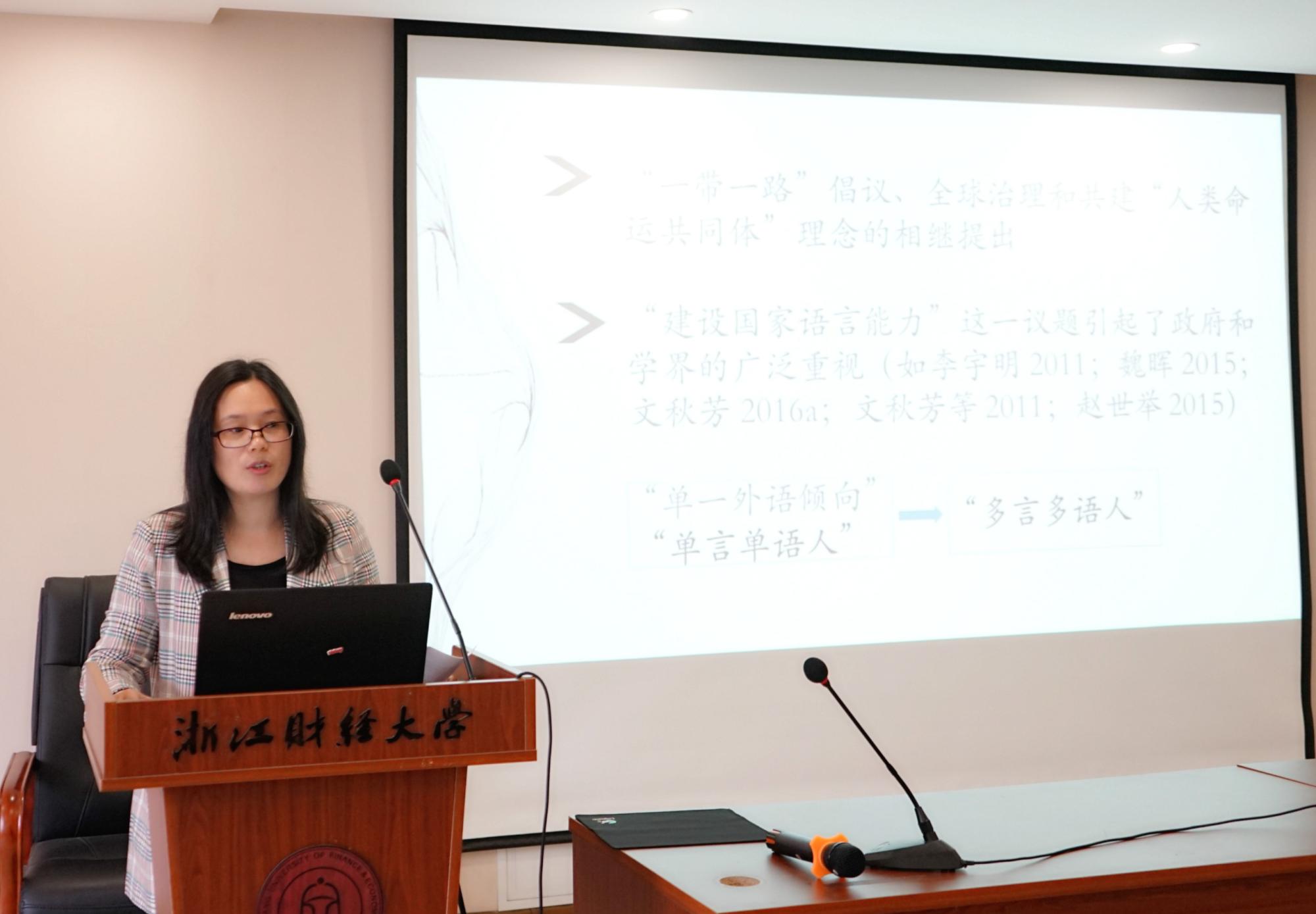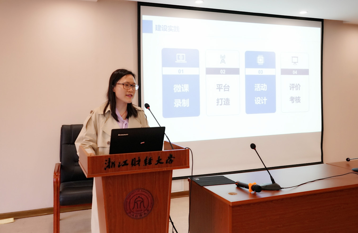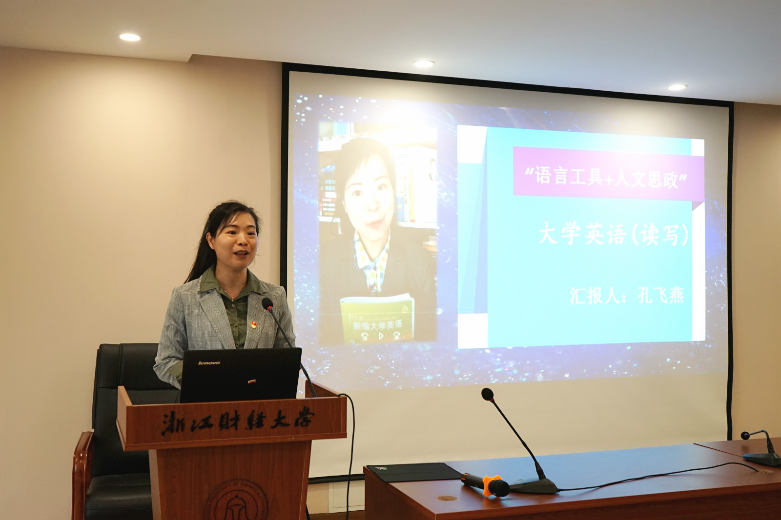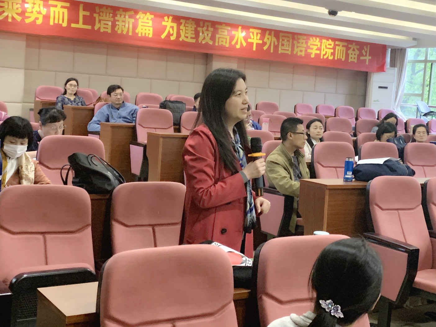 随后,陈淑莹、邱瑜毅、孔飞燕三位副教授分别展开了主题报告。陈淑莹从“复语”人才培养模式建立、阶段性成果以及挑战等方面展开,讲述了公司“英西复语”人才培养模式的构建和探索,充分肯定了复语人才模式的培养方向。邱瑜毅着重汇报了自己申报省一流课程的心得和体会,深入剖析了如何进行微课录制、平台打造、活动设计等环节的实践,她强调要让同学们“忙起来,动起来”,引导他们积极思考,同时要加强与员工的互动交流。孔飞燕则结合自身课程思政建设,从课前准备、课堂呈现、课后强化三个步骤入手,分享了课程思政的具体展开方式,生动地讲述了潜移默化、润物无声的大学外语课程思政教育。