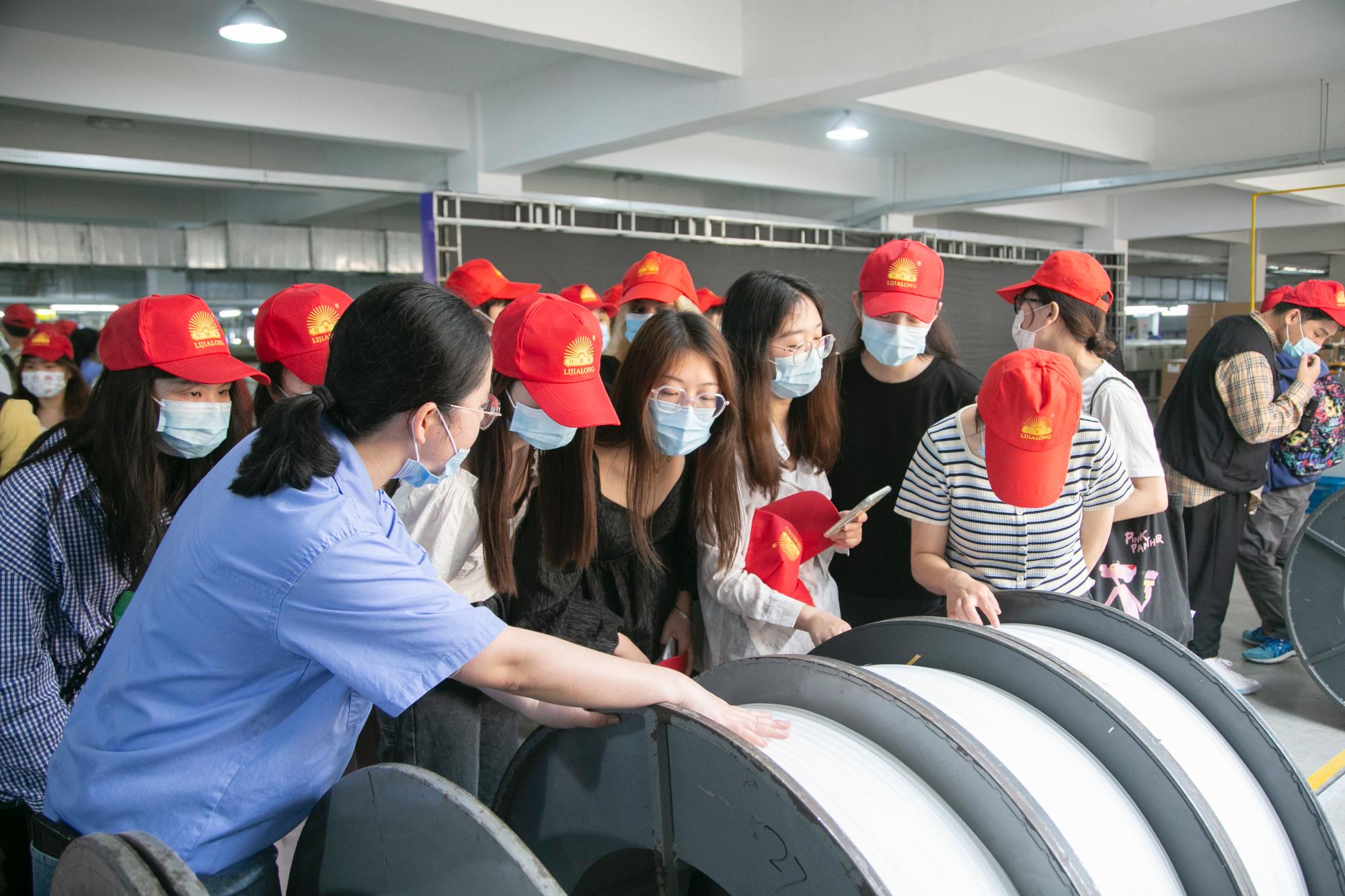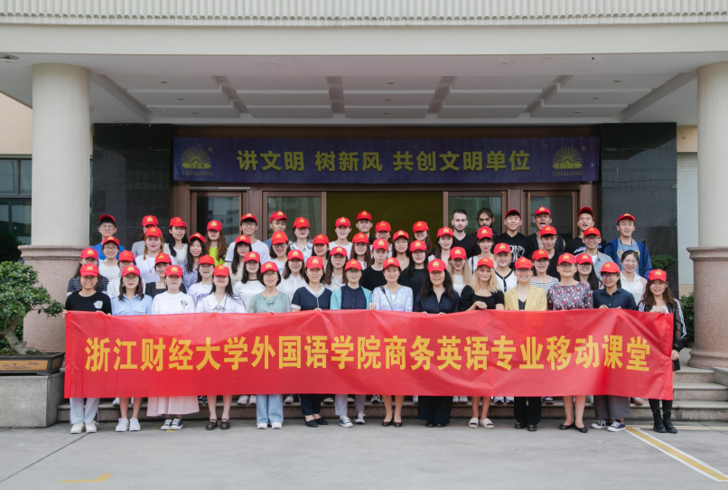 5月13日下午,在商务英语系副主任雷丽赟老师和实践基地负责人孙久荣老师的带领下,2018级商务英语专业的同学、2019、2020级员工骨干和商务英语系部分教师一行60人,来到3044永利集团校外实践基地---浙江力佳隆门窗密封条有限公司开展移动课堂实践活动。