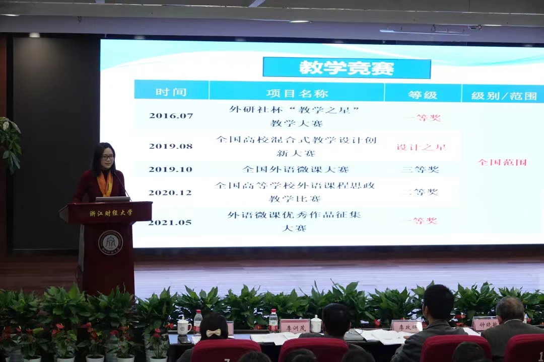 与此同时,邱老师也积极参与教学建设,探索教学改革新思路。本人主持建设了浙江省省级一流本科课程两门,校级精品课程一门,校级“课程思政”示范课程一门。并参与省级精品课程建设。其中,由她开发的《影视英语与文化赏析》作为省级线上一流课程,覆盖了全省17所高校、共2800余人选修本课程,点击量超过了70万次,在全省范围产生了较大的影响力。此外,通过主持浙江省新世纪高等公司产品改革项目和两项校级教改项目,深入探索教学理论、教学技术、以及教学手段,提升自我业务水平。