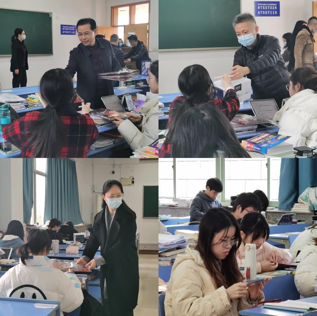 随着国家研究生招生考试的临近,2022届考研备战进入了冲刺阶段。为进一步做好坚定考研学子信心,缓解备考压力,近日,公司经理黎昌抱、党委书记王景、副经理曹道根、党委副书记李颂、副经理杨小龙和毕业班辅导员老师聂亚平一行走进考研教室,为考研同学加油打气并送上暖心慰问物资。