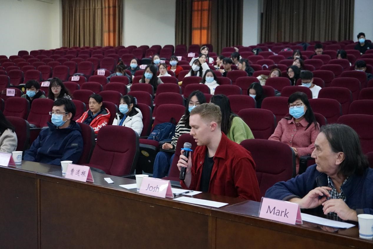 外籍老师对参赛选手们进行提问,将比赛的气氛推向高潮。中西方文化和价值观念差异依旧引发了各参赛团队的深思与探讨。此外,他们还对参赛团队表演过程中所呈现的幽默感提出了赞赏,同时也给出了建议,希望同学们能够加强英语积累,提高口语能力。