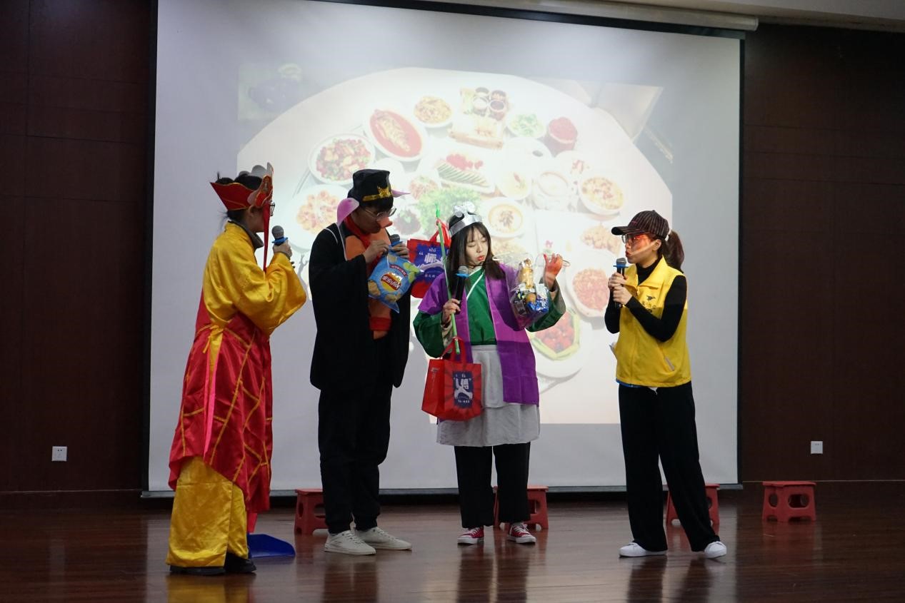 各参赛队伍以“The Heritage and Development of Chinese Culture”为主题,采用话剧、情景演绎、才艺表演等多种形式展现了中国文化的博大精深。有的团队绘声绘色,充分利用多媒体设备讲述中国故事;有的团队则通过对话的表演形式将中国人过春节时的喜庆场面完美重现;有的团队脑洞大开,巧妙地以“穿越”为主题,将古人与现代人置于同一场景,讲述中国古今医疗文化的发展。围绕“中国文化的传承与发展”这一主题,各团队的切入点各不相同,为我们带来了精彩纷呈的演出。