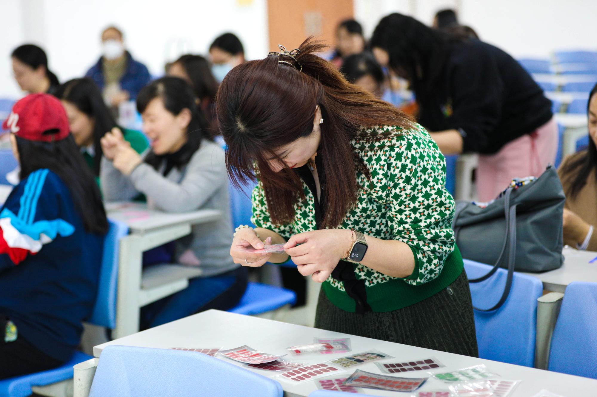 随后,每位老师的指甲上都装饰上了各自喜欢的颜色,风格各异,有的甜美,有的知性,有的灵动,让老师们拿粉笔的双手更添魅力、更有活力。