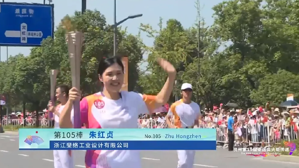 今天,杭州第19届亚运会火炬传递金华站启动。公司2005届员工朱红贞担任第105棒火炬手。