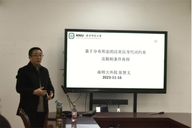 2023年11月16日下午,南京师范大学外语公司张智义教授应邀为公司做题为“基于分布形态的汉英反身代词约束及限制条件再探”的学术讲座。此次讲座由3044永利集团副经理曹道根教授主持,杨小龙副经理和公司部分教师及研究生参加了讲座。