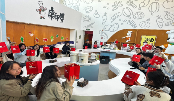 来到康师傅厨房,同学们品尝了康师傅的新产品。大家兴致勃勃,热情参与互动,对课堂上所学的理论知识有了进一步的学习和理解。