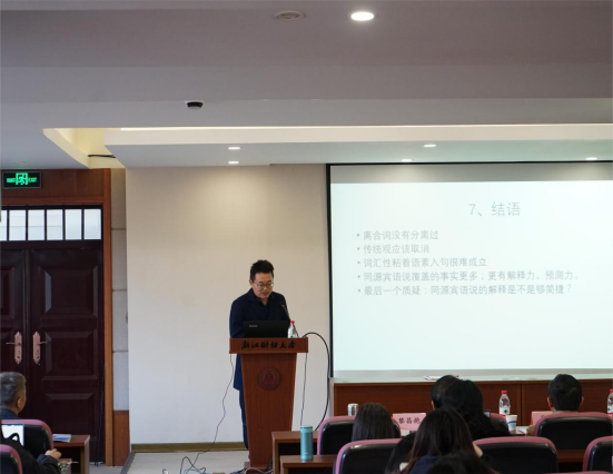 会上,叶狂教授作了题为“词汇完整性新论及其对汉语离合词研究的启示”的主旨发言。叶教授在生成语法框架下进一步论证并维护了汉语离合词在本质上是一种同源宾语结构的主张。