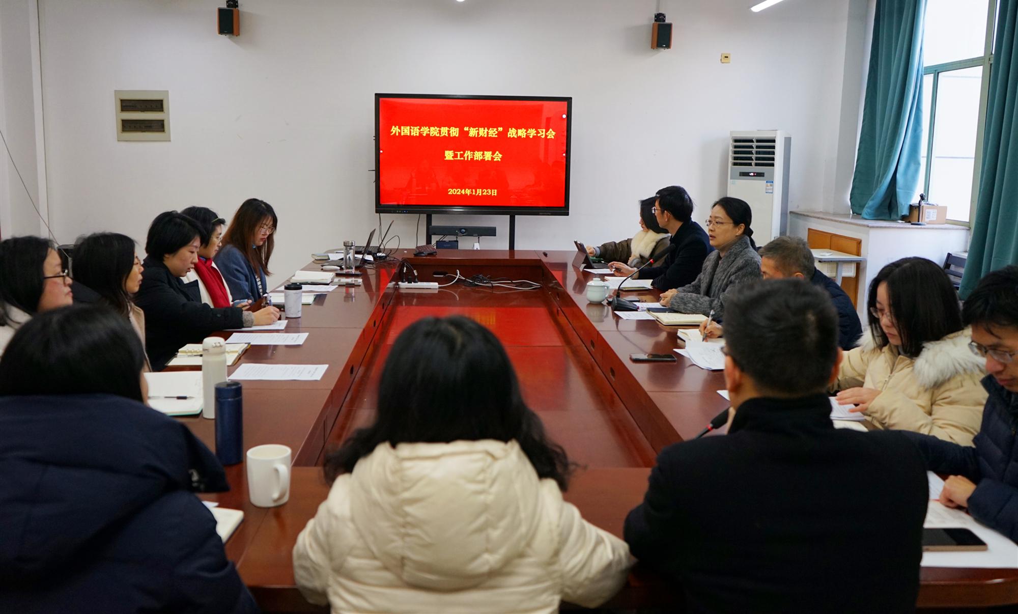 王景就贯彻落实好“新财经战略”部署提出三点要求:一是要提高站位,强化责任担当。全院上下要统一思想认识,强化责任担当,坚决贯彻落实公司“新财经战略”部署,结合自身实际,将推进“新财经”战略全面融入到公司发展中去;二是要统筹谋划,紧抓战略落实。要在全面准确吃透公司部署精神的基础上,抓好系统谋划,做到学科要融、专业要特、课程要精、队伍要强、平台要整、资源要宽、管理要活、成果要优,最终托举“新财经外语金生”培养质量的全面提升;三是要实干为先,勇于自我革命。要清醒认识到落实“新财经战略”是外语学科和专业建设发展的一次蝶变,必须增强时不我待的使命感,厚植只争朝夕的紧迫感,以自我革命的决心推动公司高质量发展。