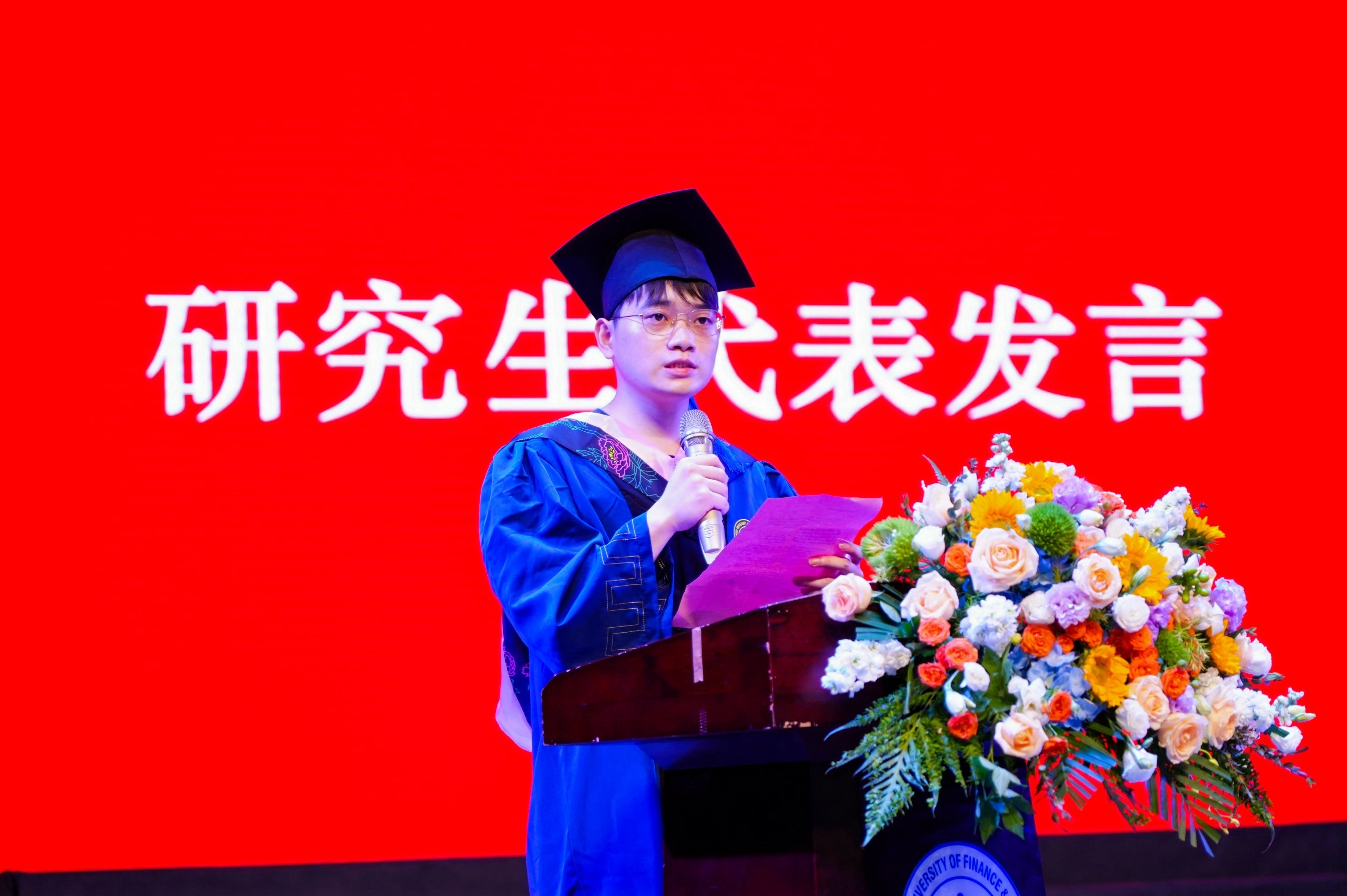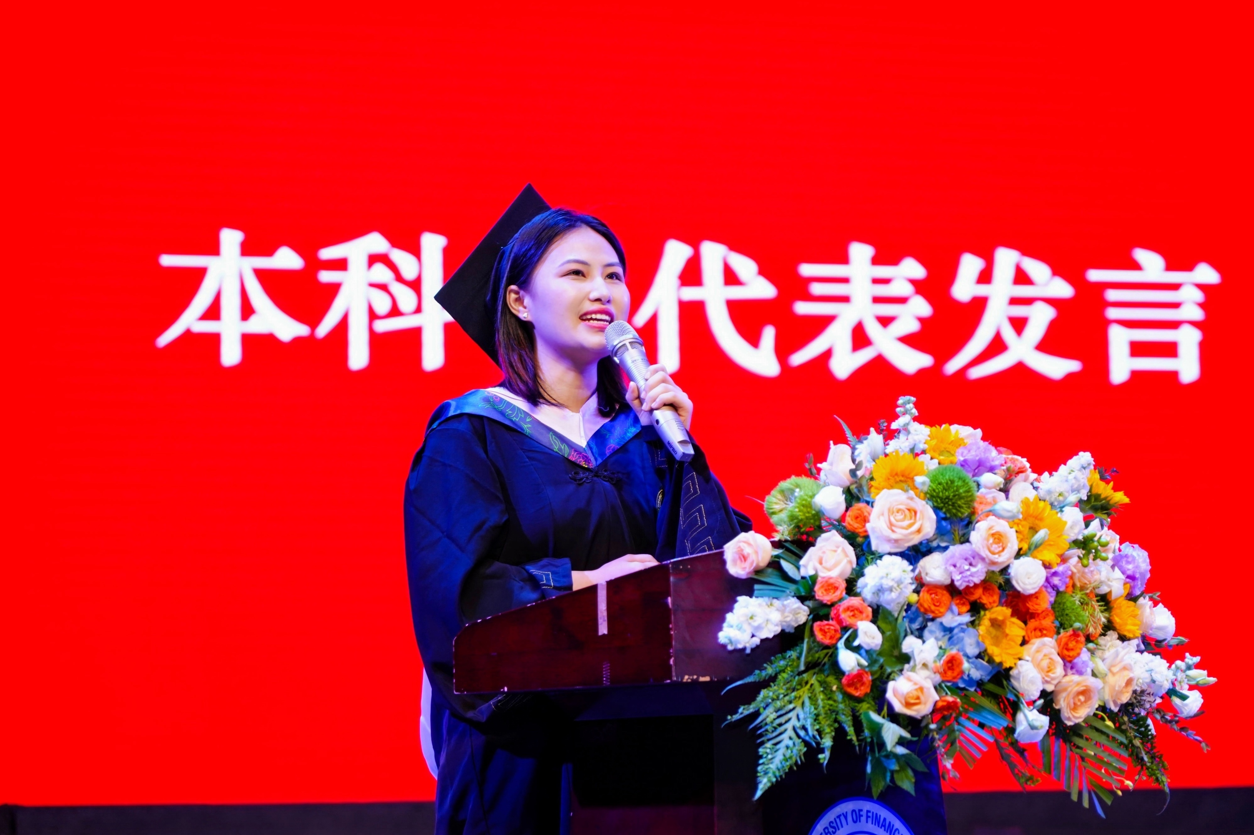24届本科毕业生代表黄婷婷、研究生毕业生代表吴佳健及职工毕业生代表安娜依次上台发言,回顾了在浙财的求学经历,在这里成长成才,感谢公司及公司的精心培养、老师们的耐心教导,说出了全体毕业生的心声。