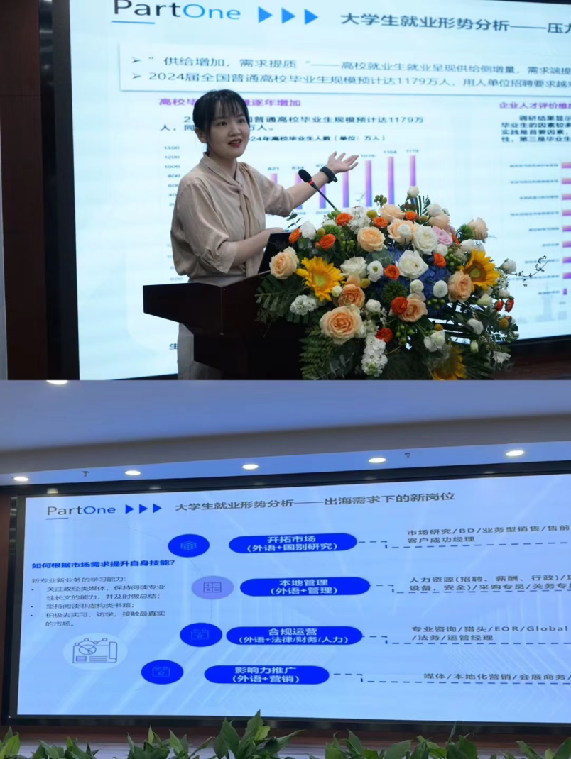 “新生见面会的现场让我们大开眼界,看到公司优秀员工的事迹很激动。听了老师的讲解后,我才知道,今后对多语言人才需求量有这么大,全球化进程给我们带来了语言红利期,国际化就业的薪资很有吸引力,我今后打算修一门微专业,多掌握一些本领,尽早为就业做准备。”——王代镅