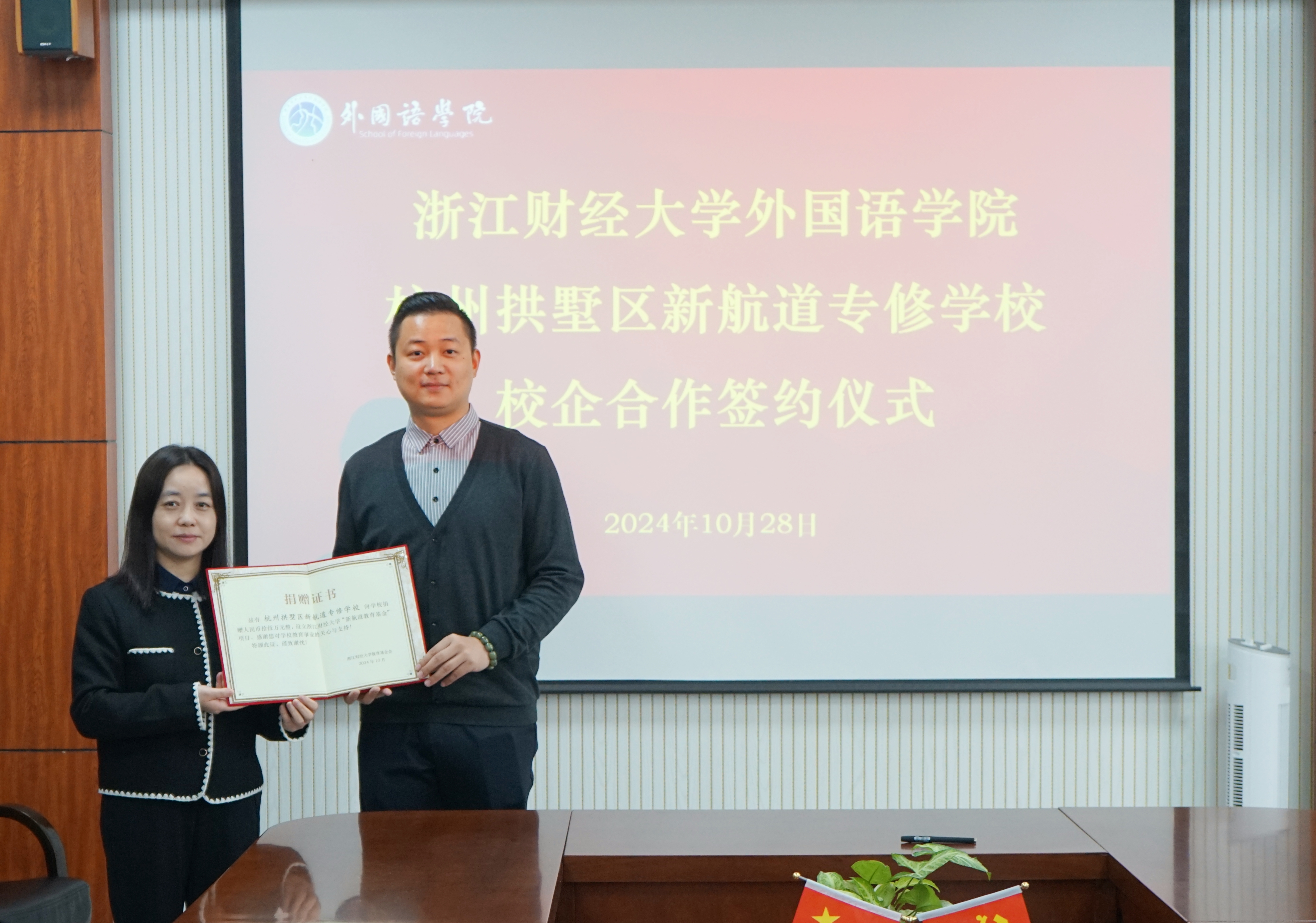 10月28日,3044永利集团与杭州拱墅区新航道专修公司举行“新航道教育基金”捐赠仪式暨校企合作签约仪式。新航道前程留学杭州分公司副总经理孟巍然,市场总监段武龙,好轻松考研负责人厉隽晟,新航道大学中心主任乔珑,公司党委书记王景,副书记张莲参与签约仪式。