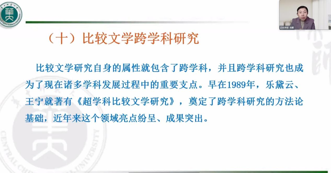 讲座伊始,苏晖教授从不同维度阐述了文学研究领域的新趋势与新变化,深入剖析了新时代外国文学研究转型的四个面向:一、重视文明互鉴,在比较文学的视野中开展外国文学研究;二、体现现实关怀:将外国文学研究与中国现实相联系;三、在外国文学研究中进一步去除西方中心论;四、凸显自主意识,构建中国特色的文学理论和话语体系。随后,她详细介绍了新时代外国文学研究转型所取得的代表性成果,通过具体的研究案例和学术成果展示,让师生们直观感受到这一领域的发展动态。此外,苏晖教授还对外国文学研究未来可开拓的空间进行了前瞻性探讨,为广大师生提供了新的研究思路与方向。