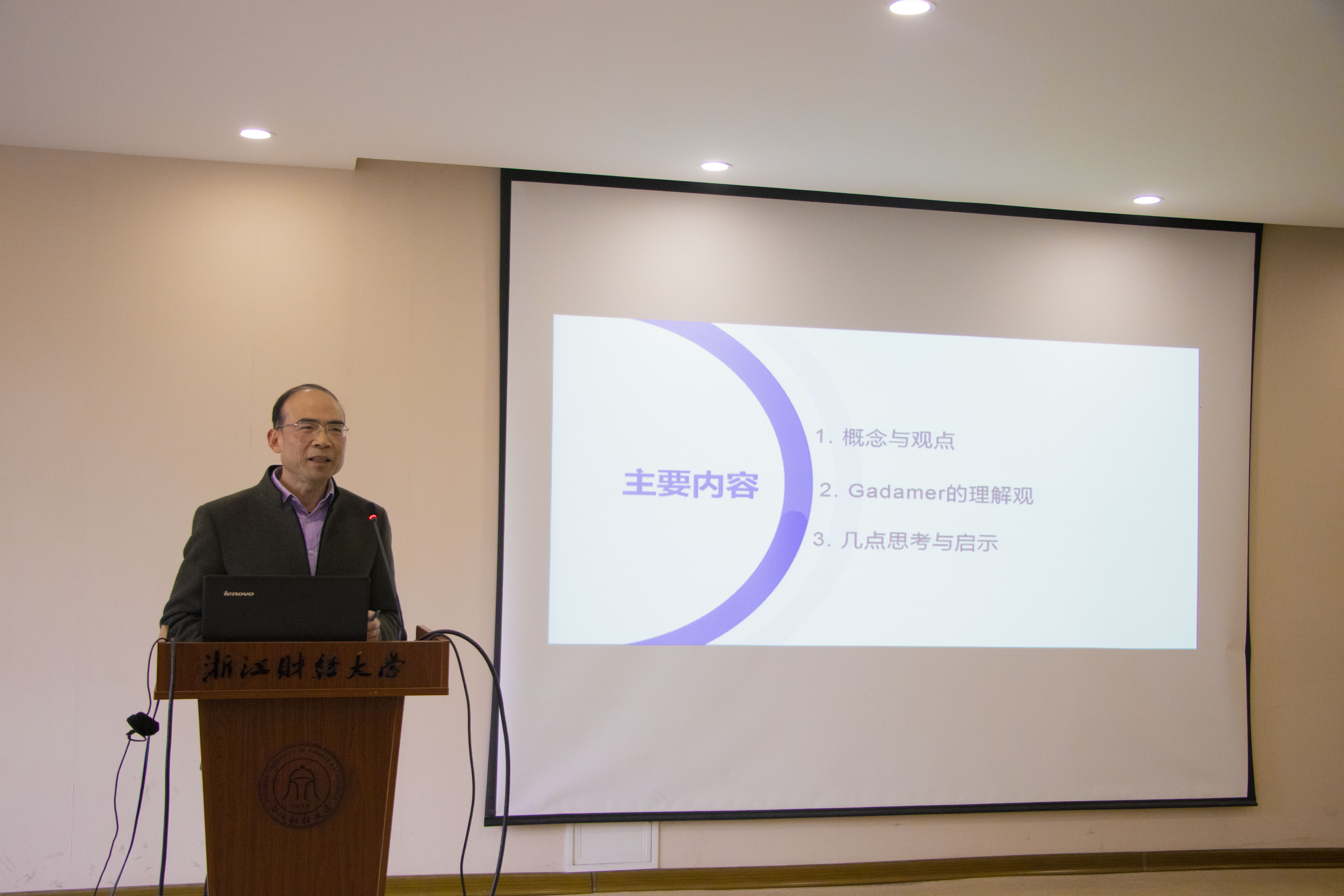 濮建忠教授作了题为“语言与理解:谈Gadamer的理解观”的发言,他从自身阅读Gadamer的《真理与方法》一书的体验出发,深入探讨了理解的概念与过程,并阐释了语言在理解中的核心作用。濮教授引用了海德格尔的观点“人是理解着的存在”,指出理解是人类的本质特征,语言是实现这一特征的关键工具。他进一步讲解了对话在理解中的重要性,特别指出共文与互文是诠释语境的构成要素,影响着语言与文化的深度融合。通过对“understanding”一词的词表分析与关键词分析,濮教授展示了如何通过语言学的研究方法深入理解文本,并强调阐释学在语言学研究中的核心地位,指出理解不仅是人与人之间的对话,更是人对世界自我认知的过程。