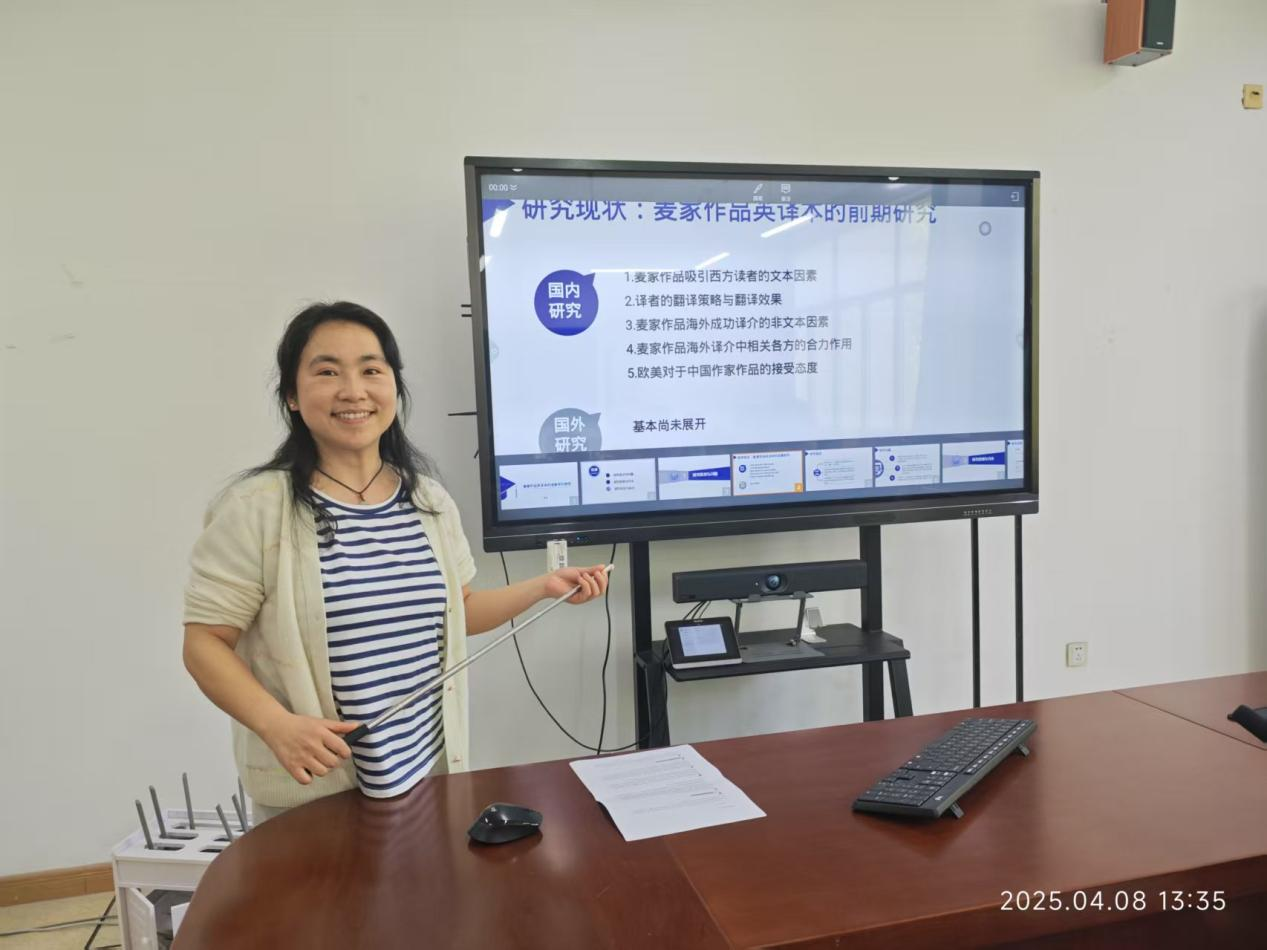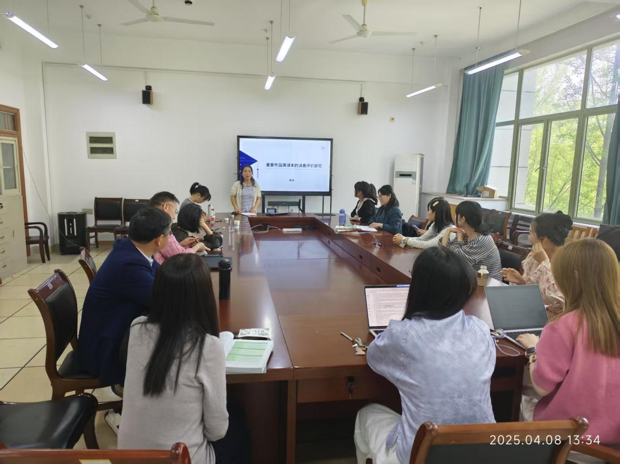 4月8日,3044永利集团英语系在8304会议室开展专题教研活动。本次活动以“麦家小说英译的读者评价研究”为主题,由缪佳教授担任主讲,英语系全体教师参与研讨。
