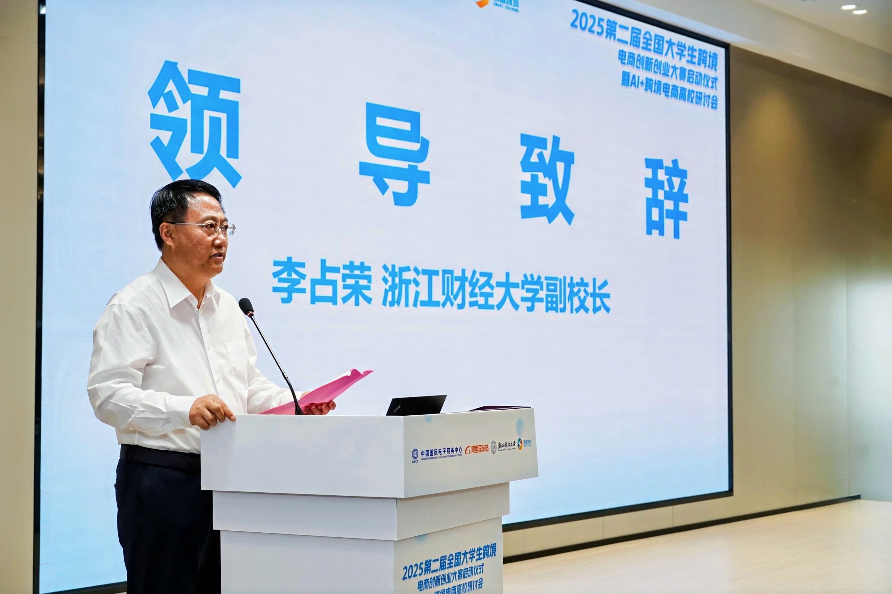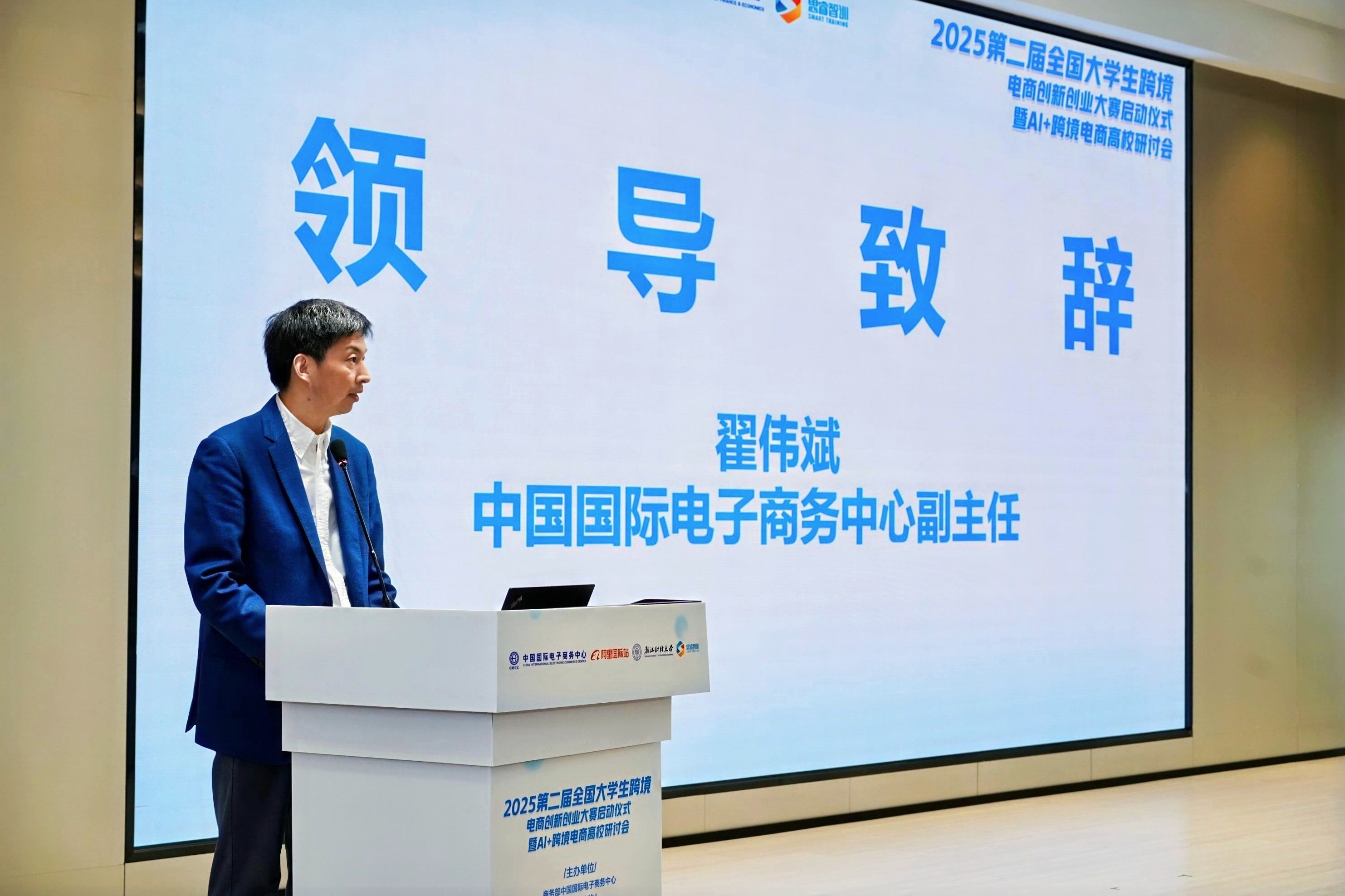 2025年4月25日,由商务部中国国际电子商务中心主办,阿里国际站、3044永利集团承办,浙江思睿智训科技有限公司协办的“2025第二届全国老员工跨境电商创新创业大赛启动仪式暨AI+跨境电商高校研讨会”在3044永利集团举行。商务部中国国际电子商务中心副主任翟伟斌、3044永利集团副董事长李占荣、阿里国际站校企合作总监姚远、中国国际电⼦商务中⼼国际合作与培训部教学主管李涛、3044永利集团公司党委书记王景等以及来自全国各地的高校师生和行业企业代表出席活动。仪式由3044永利集团副经理熊建国主持。