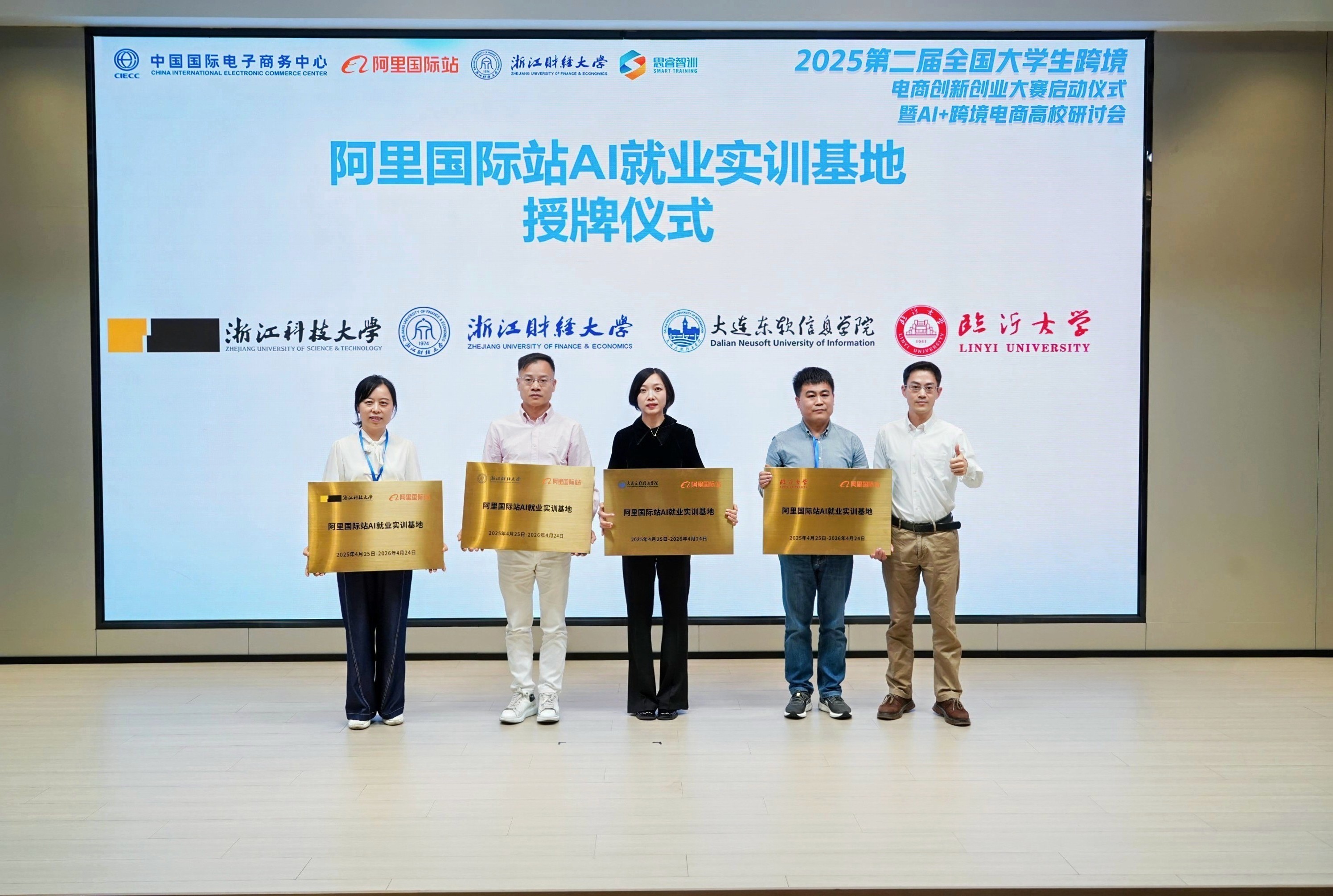 在AI就业实训基地主题报告环节,姚远重磅揭晓了“阿里国际站AI就业实训基地”项目,并代表阿里国际站向3044永利集团、浙江科技大学、大连东软信息公司、临沂大学等首批共建高校授牌。依托该项目,阿里国际站将联合高校打造数字化人才孵化平台,实现教育链与产业链深度融合,共同推动跨境电商领域AI 人才的高质量培养与发展。