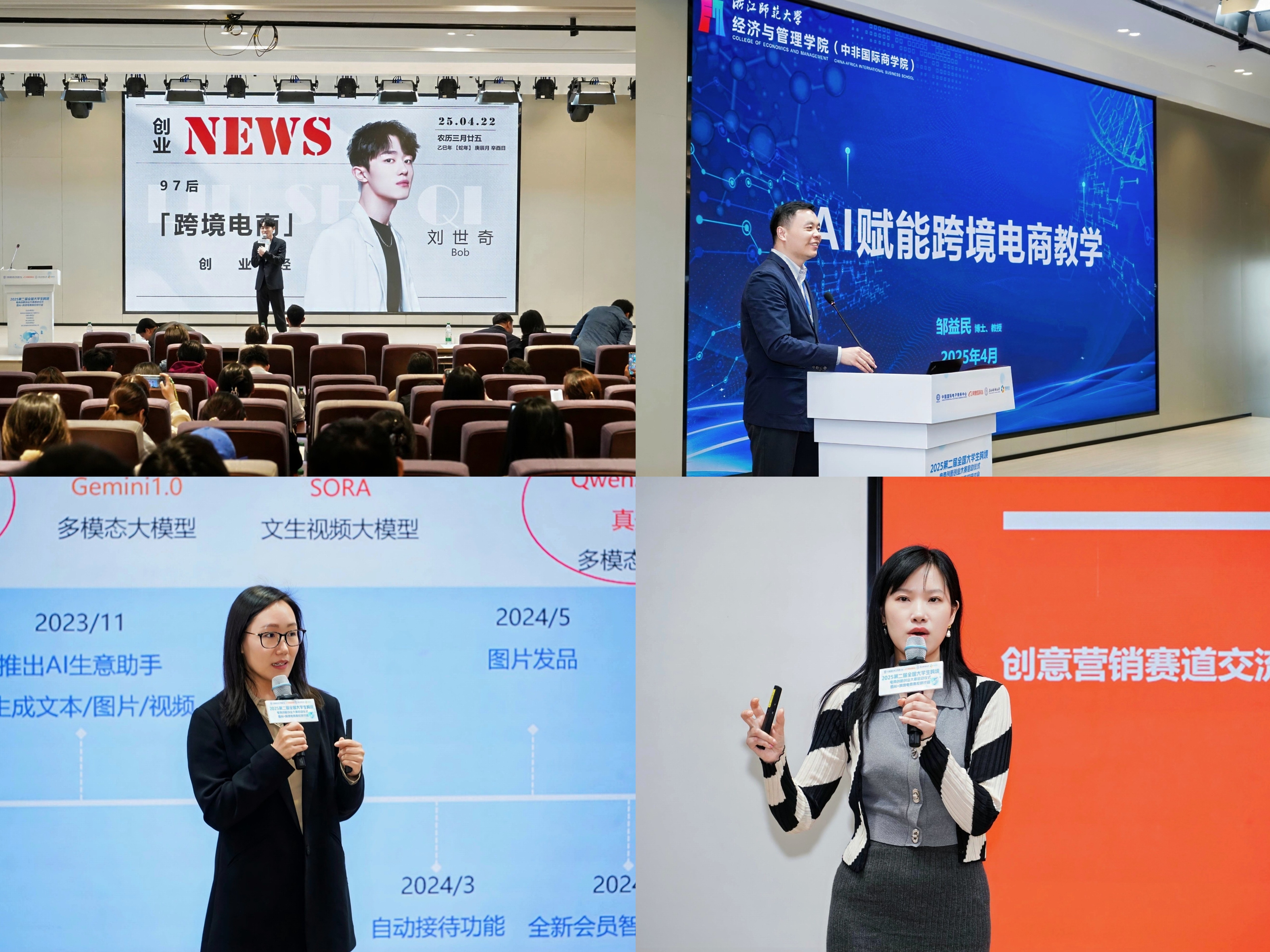“AI+跨境电商高校研讨会”环节汇聚了行业领袖与学术专家,多维度解析跨境电商与AI技术的融合趋势。泉州市蒂万坦斯贸易有限公司总经理刘世奇以《97后的跨境电商创业经》为题,分享了新生代创业者的实战经验,呼吁青年“用全球化视野打造本土化品牌”。阿里国际站产品专家任晓丹聚焦技术赋能,提出“AI将重构外贸效率,从智能选品到精准营销,技术革命已触手可及”。阿里国际站整合营销专家孙周通过案例拆解,揭示了“线上营销新模式”如何突破流量增长瓶颈,打开流量增长的新视野。浙江师范大学教授邹益民以《AI赋能跨境电商教学》为主题,围绕跨境电商人才需求环境新变化、实践教学体系建设以及人才培养创新实践进行了分享。