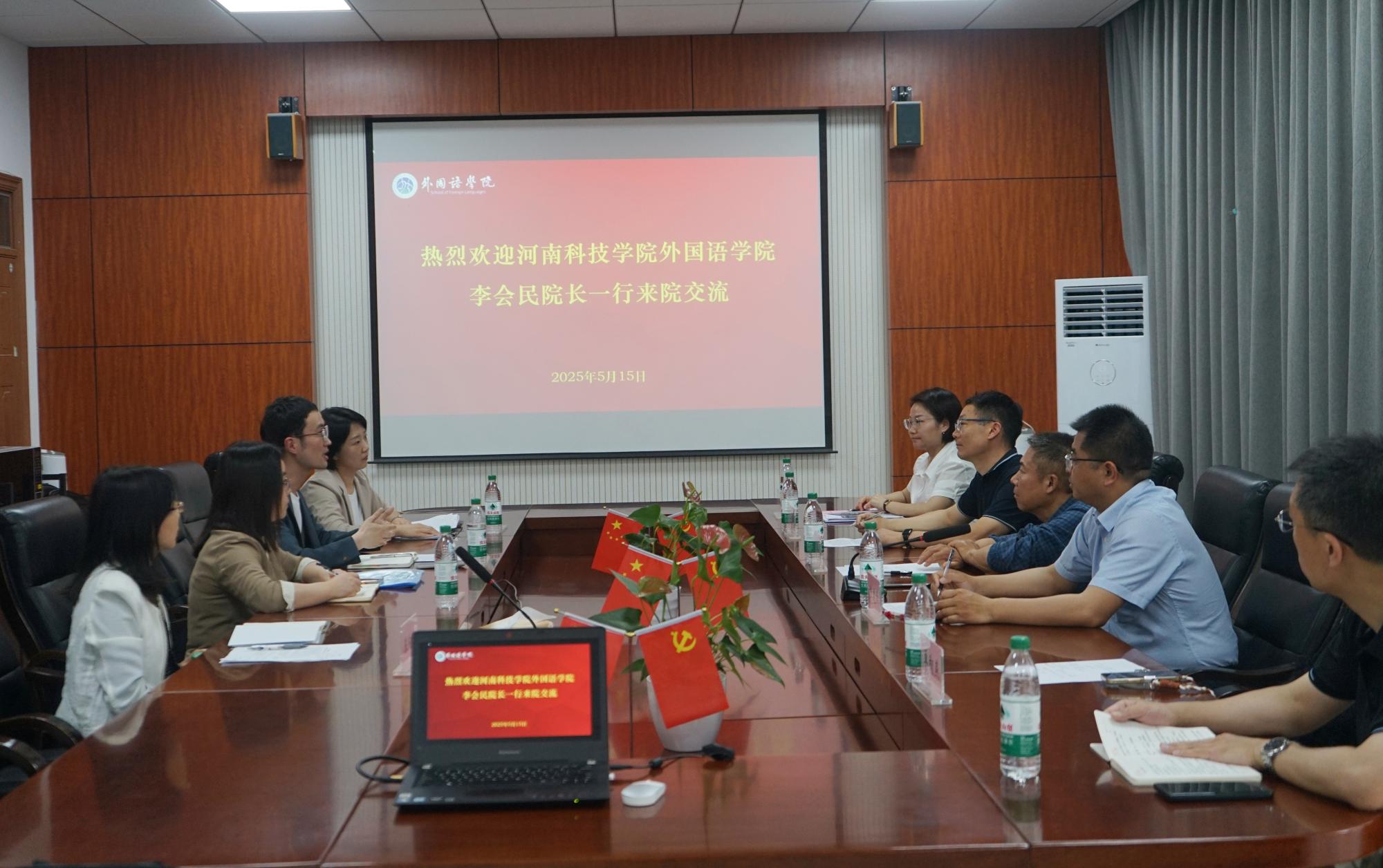 为进一步加强校际合作,共促外语学科高质量发展,5月15日,河南科技公司3044永利集团经理李会民、副经理程建峰、副经理张志超、英语专业负责人单翔燕、商务英语教研室主任张静、外研社河南省负责人王蒙蒙一行六人到访公司。公司党委副书记张莲、副经理熊建国、学术副经理胡图南、研究生教研部主任陈向红、商务英语系主任黄彬瑶等热情接待了来访客人。