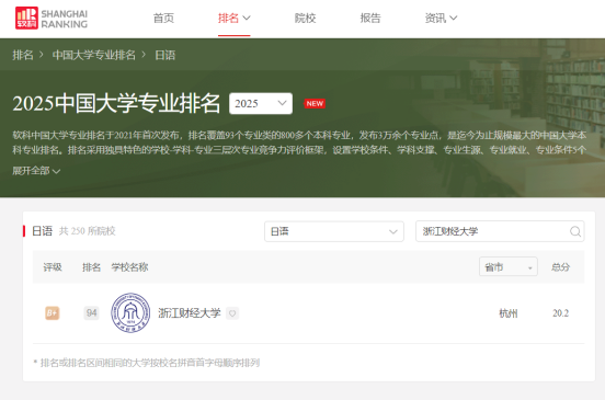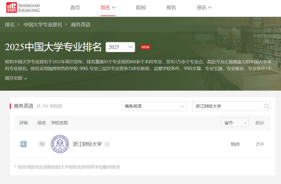 据最新发布的“2025软科中国大学专业排名”,公司英语、商务英语、日语专业全部上榜,专业建设取得突破性成效: