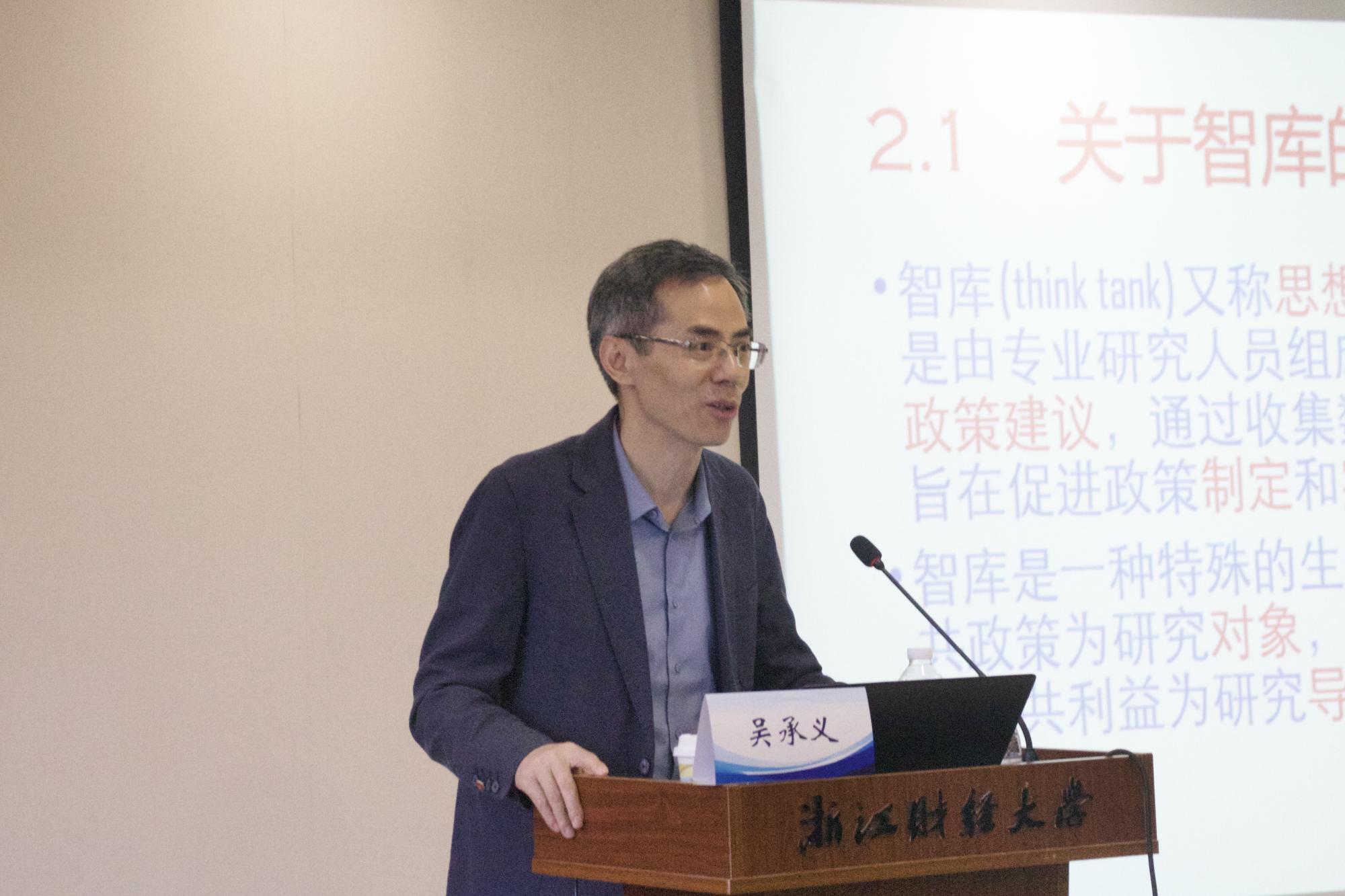 讲座伊始,吴承义教授回顾当天上午讲座中关于区域国别学学科的总结内容,进而提出做好区域国别研究所需具备的三大核心能力:学术能力、智库素养与媒体意识。吴教授重点阐述开展智库研究所需的知识储备与能力训练。在知识储备方面,研究者应深入了解智库的基本定义、功能与服务对象、主要任务、成果类型以及中国特色智库体系;在能力训练方面,则应循序渐进,从低门槛成果起步,逐步向高门槛成果迈进,并注重战略思维、历史思维、辩证思维、创新思维以及实践思维五个方面的系统训练。吴教授强调,优秀的智库成果应着眼于前瞻预测与对策应对,确保信息来源可靠、立场正确,并保持文风简洁有力。最后,他寄语研究者,应胸怀远大抱负,坚守学术忠诚,坚定不移地走在科研道路上。