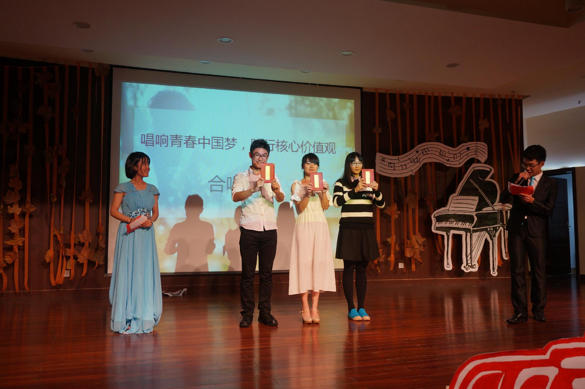 舞台上,旋律激昂,气氛热烈,合唱中既有充满激情的歌曲串烧,优美的朗诵,又穿插情景表演和运动Show,丰富的形式,精彩的演出赢得台下阵阵掌声。经过激烈决出,评选出一等奖1名,二等奖2名,三等奖3名。
