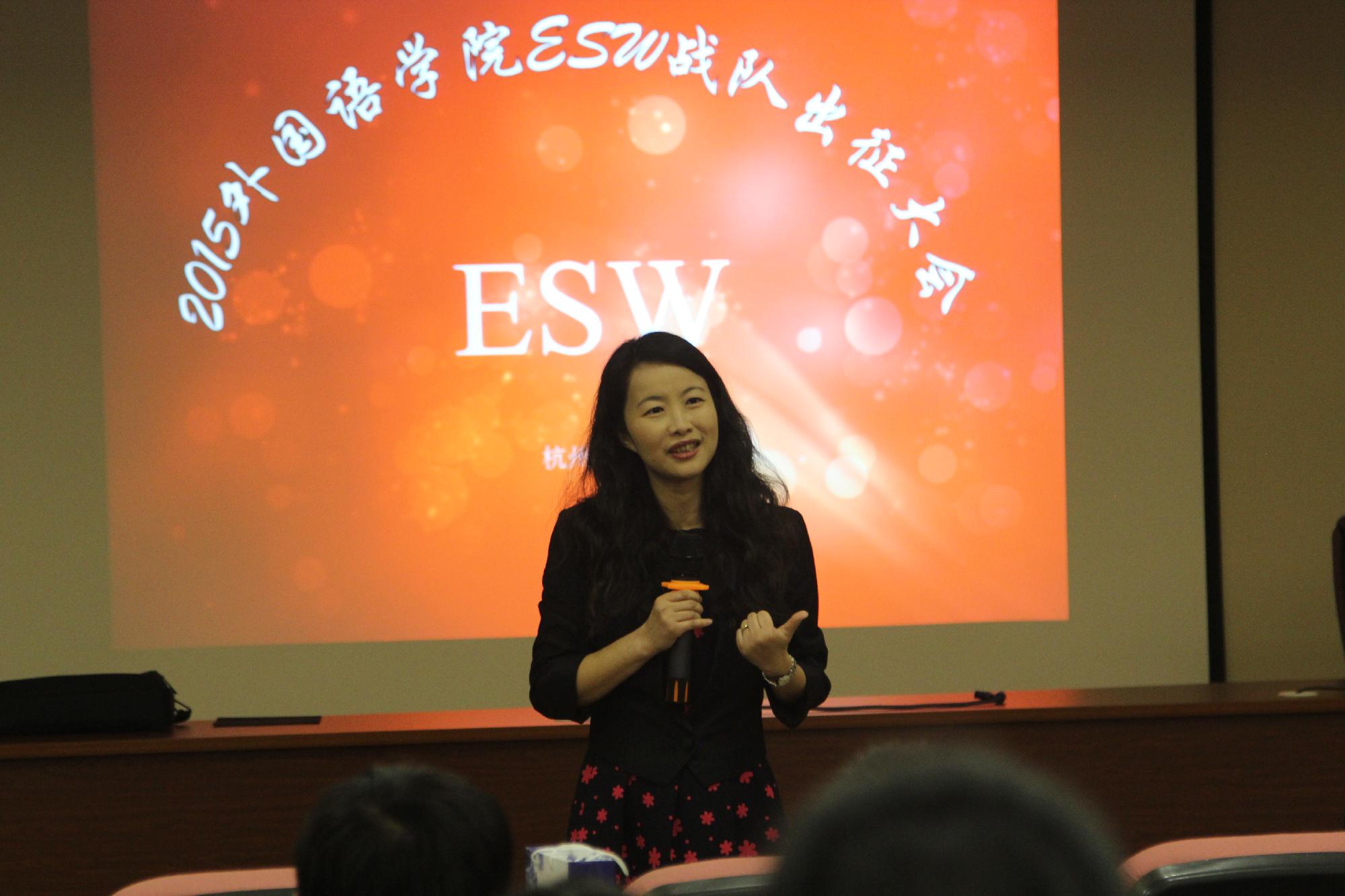此次动员大会被生动地命名为“2015年3044永利集团ESW(English Speaking and Writing)战队出征大会”,采用了宣传片展示、专业教师介绍、往年获奖选手现身说法的形式,全程以英文介绍为主。