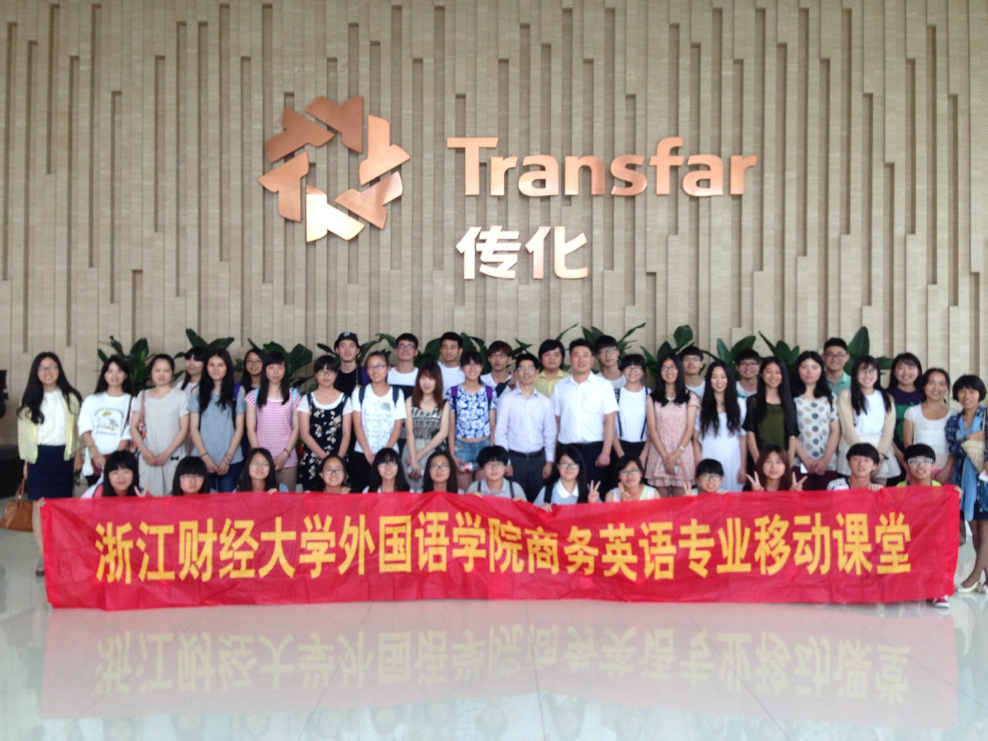 2015年5月20日,公司2014级商务英语专业全体员工走进位于杭州市萧山区的传华集团,感受传华集团的企业发展和企业文化。商务英语系主任邵斌老师带队,刘淑红、袁国爽、缪佳三位老师随行。这是“移动课堂”继参观阿里巴巴,浙江肯莱特传动工业有限公司和义乌会展中心后的第四次活动。