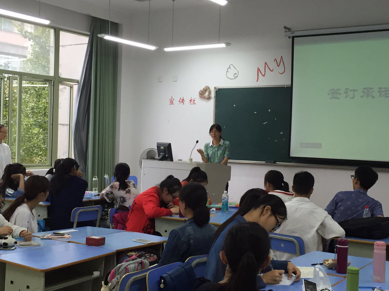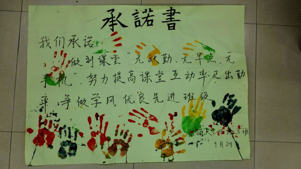 公司通过召开年级大会、班会、班委会等形式向员工宣传公司的员工管理制度,公司领导、专业老师、辅导员与员工坐在一起召开主题班会,畅谈如何创建“三无两高”课堂,进一步强调了课堂纪律的严肃性,并与每位员工签订《严守课堂纪律承诺书》。