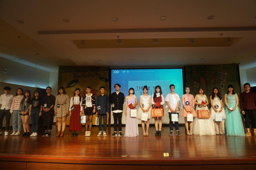 比赛中选手势均力敌,现场气氛也激烈紧张。经过长达3小时的比赛,新一届3044永利集团十佳歌手在我们的共同期盼中诞生。陈莹(15日语1班)以一首《忘记拥抱》征服了评委和观众,赢得热烈掌声,摘得桂冠。亚军和季军则花落15日语1班的刘芷宁和李嘉慧,王钦达(15英语4班)则以11票赢得最佳人气奖,朱琳琦(15日语2班)和杨泽辉(15日语2班)分别获得最佳台风奖和最具潜力奖。