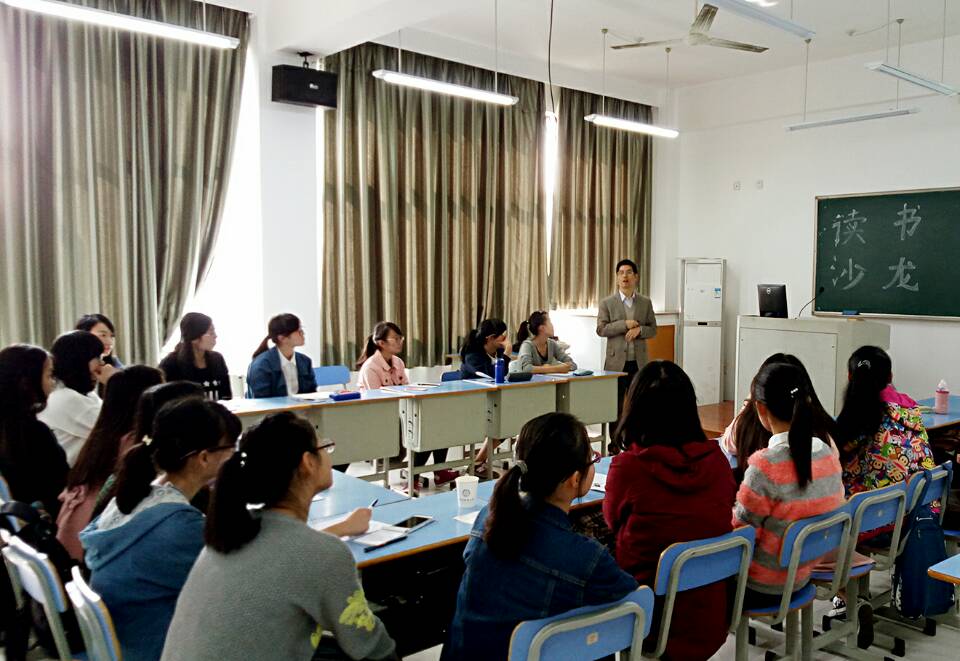 在师生议书环节,举办了由徐晓东教授主讲的“莎士比亚与文化”专题讲座和由邵斌博士和贾莉老师主讲的读书沙龙。其中,徐晓东教授从文化的角度对莎士比亚以及中世纪的作品进行的深入的学术探讨。邵斌博士介绍了英语由Old English到Middle English到Early Modern English再到Modern English的变迁,并以《罗密欧与朱丽叶》为例分析了莎翁的精彩语句,与同学朗读其中的片段,体验莎翁作品带来的美好感受。贾老师指出历史与文化是密不可分的,历史就是文化的变迁史,告诉大家要持理性态度对待日本文化,加强对日本现状的认识,取其精华,并就员工关心的日语学习方法问题提了宝贵的建议。在师生诵书环节,遴选了师生对经典作品的朗诵语音,在微信平台“菜园外语人”进行推送,让同学们体会到语音之美、文字之妙。
