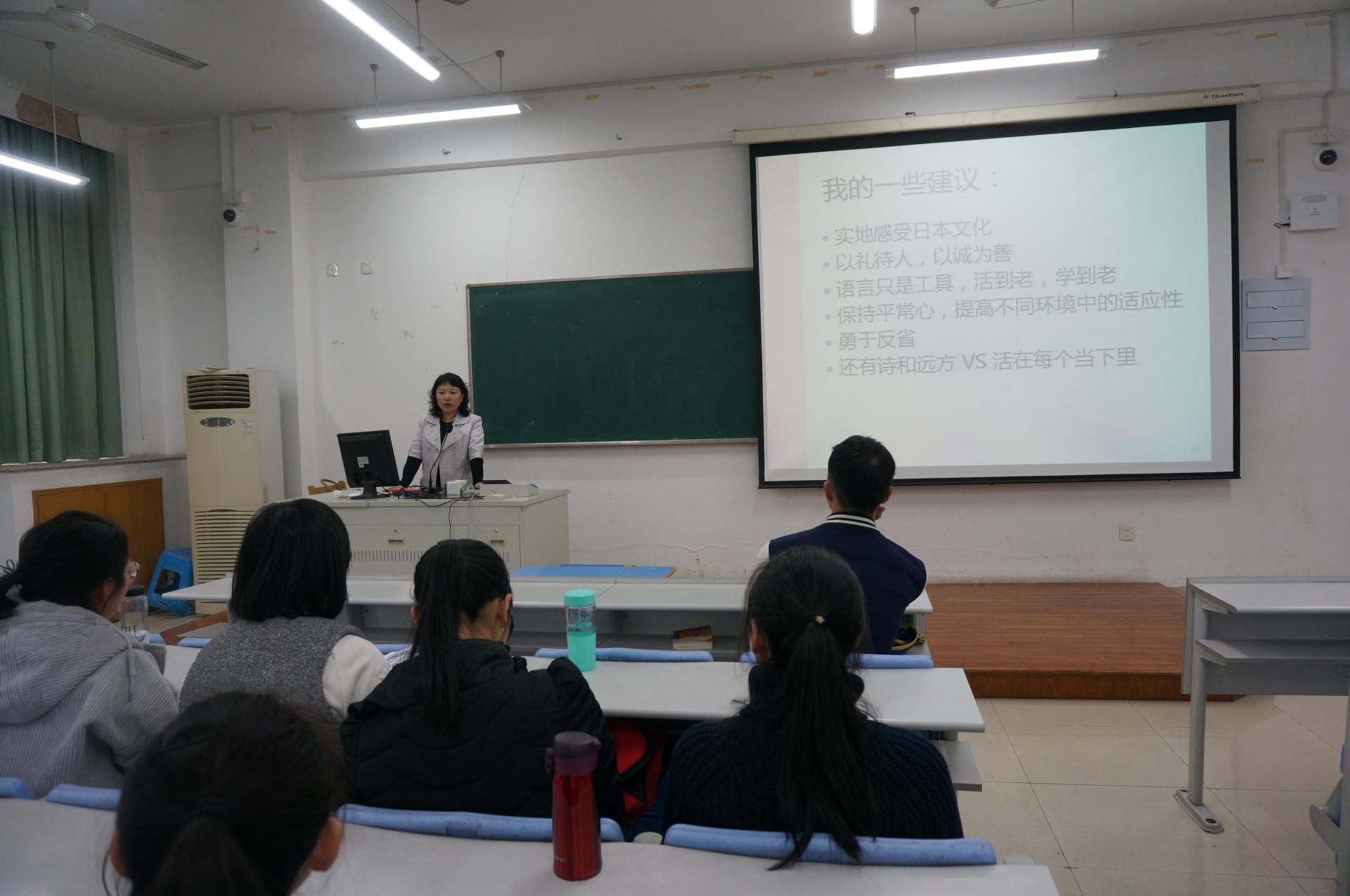 首先,赵女士分析了目前日语专业毕业生严峻的就业形势,让在座的同学们感受到了严峻的就业压力,但同时也提振了大家的专业学习热情。其次,她从日美文化的差异与共性,通过实例向同学们展示了日本企业和美国企业所培养的不同性格的人才:美国企业注重的创新精神;而日本企业则注重个人对公司的忠诚。最后,赵老师从日语专业员工的角度出发,就自己亲历的日语学习经历和日本留学经历,为同学们提供了一些宝贵的建议。她认为,在公司里学习的只是书本里的知识,同学们需要更多积累一些社会经验,为今后的求职打下良好的基础,尤其应该多利用自己的空余时间去探索实践。