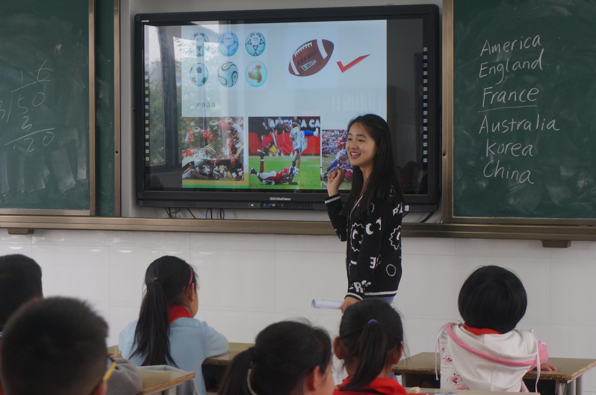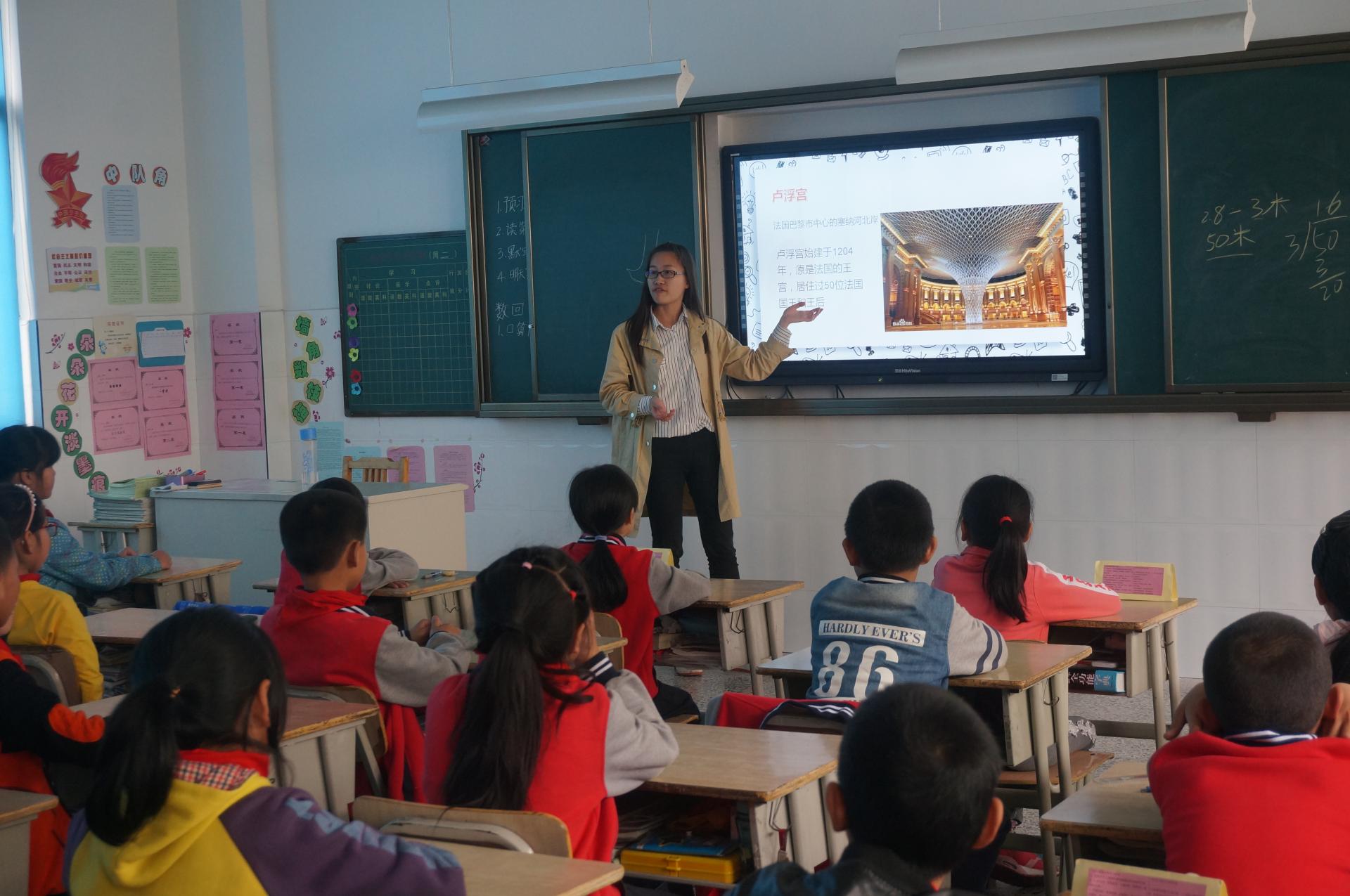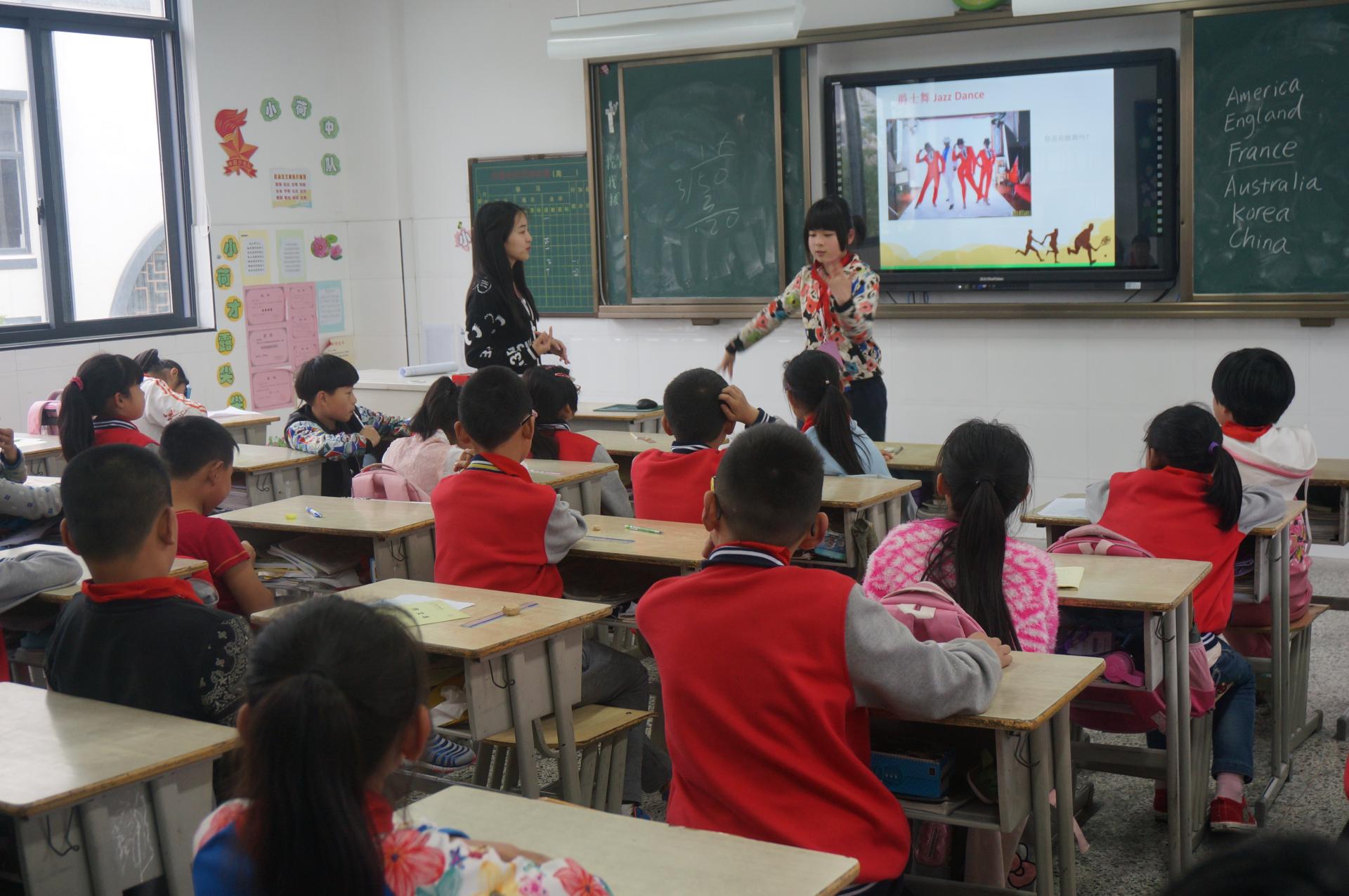 盐官镇丰士小学是本次实践活动的第一站。公司志愿者分组为丰士小学四年级四个班的所有孩子们讲解了西方地标性建筑和西方传统文化两堂专题课。志愿者们讲课流畅自然、内容风趣,年轻的“老师”、精美的课件、热烈的互动都使得孩子们无比活跃热情。他们坐姿端正、频频举手发言,有的还主动上台表演舞蹈。课堂效果也得到了校方的充分肯定。